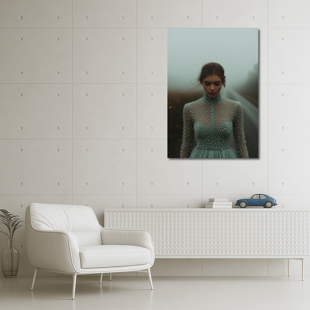 A foggy day and soft hues, this painting is an atmospheric wall art that takes you into dreamy worlds. See more from the collection: Wall Art with Women