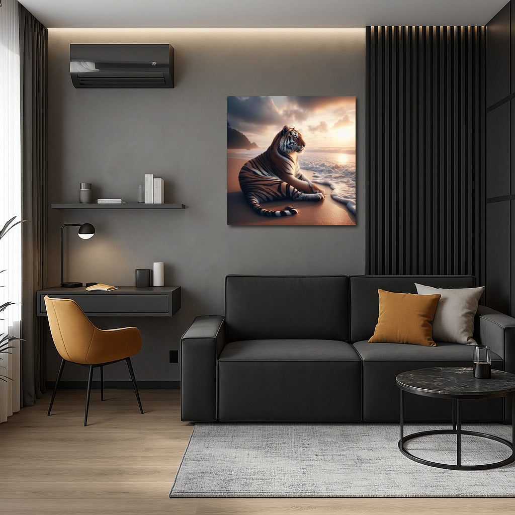 Tiger Meditation on the Beach: Peace and Strength in the Interior Wall Art