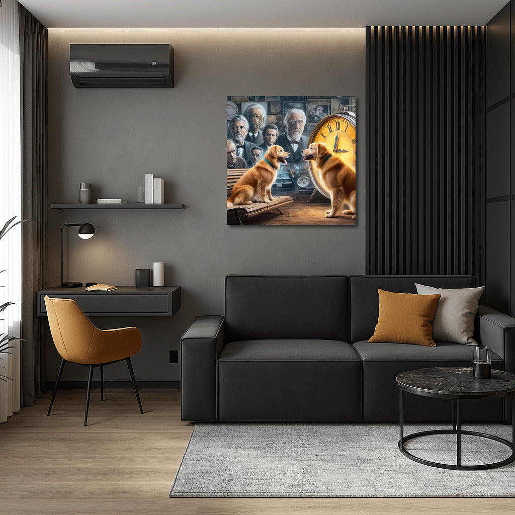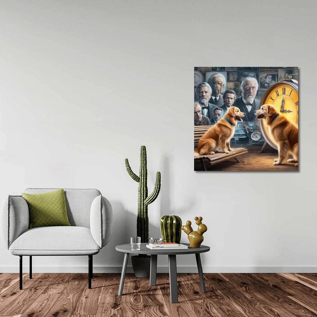 Poster: A dog in time meets himself in different eras. Immersion in history - wall art with a fun plot! See more from the collection: Animals Art