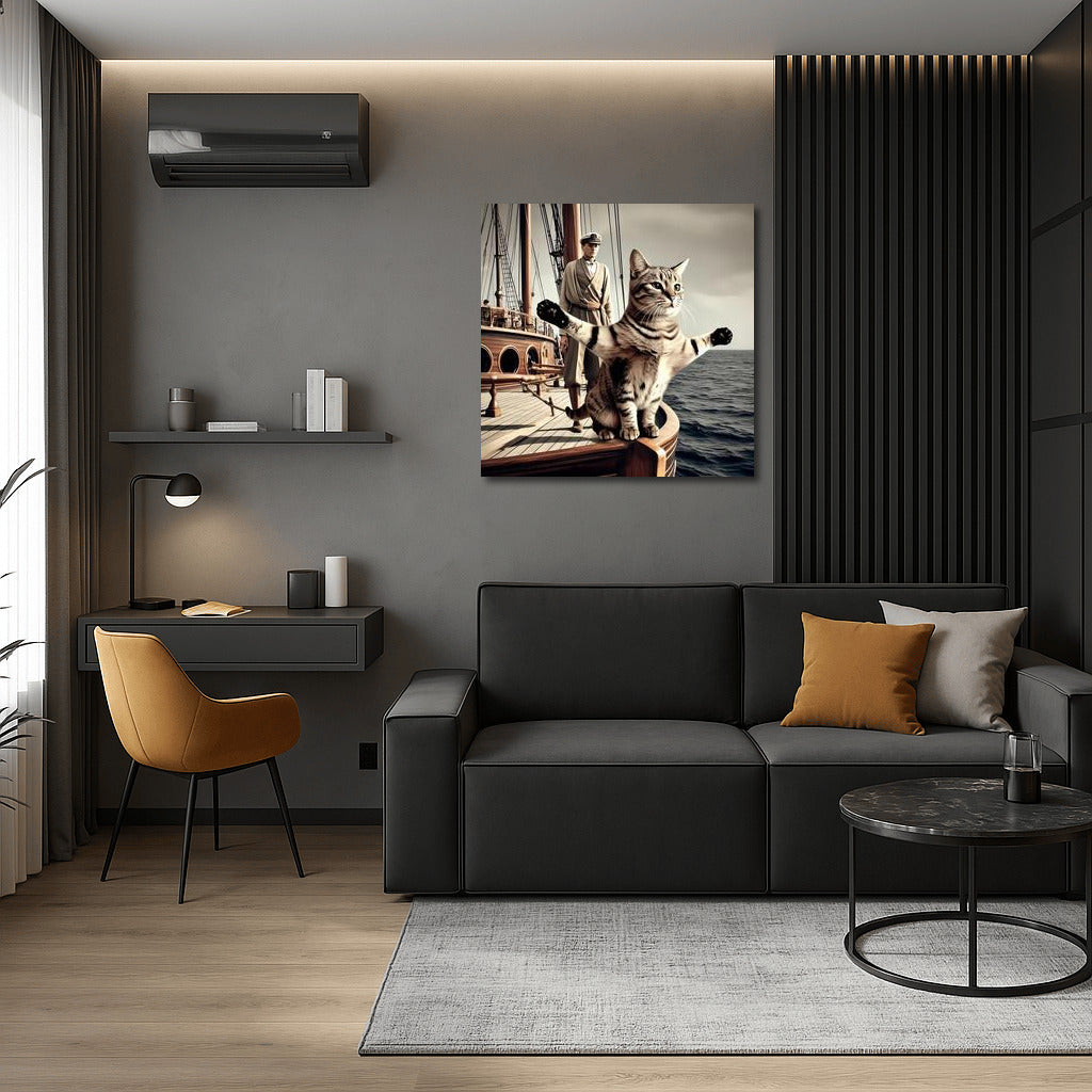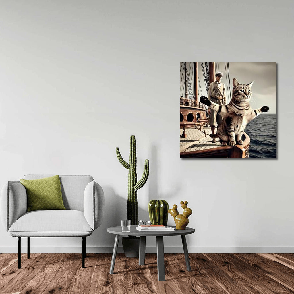 Poster Cat on the Bow of a Ship: Adorable Titanic-inspired wall art. The cat creates an iconic scene with his paws outstretched. See more from the collection: Animals Art