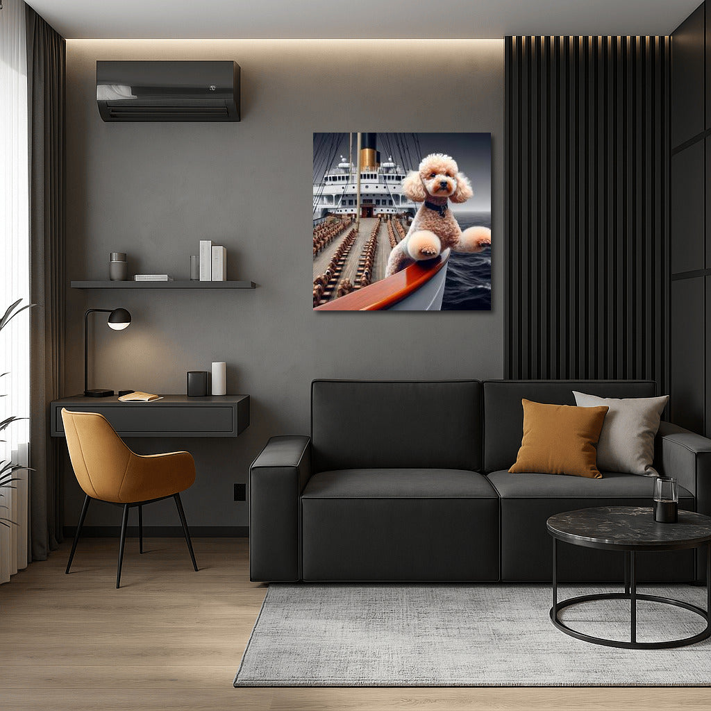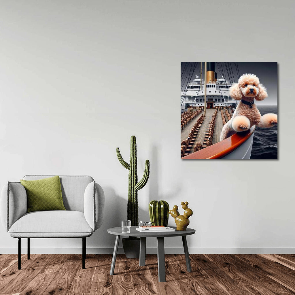 Feel the grandeur with this poster featuring an adorable Titanic-style poodle on the bow of the ship, recreating the iconic scene. See more from the collection: Animals Art