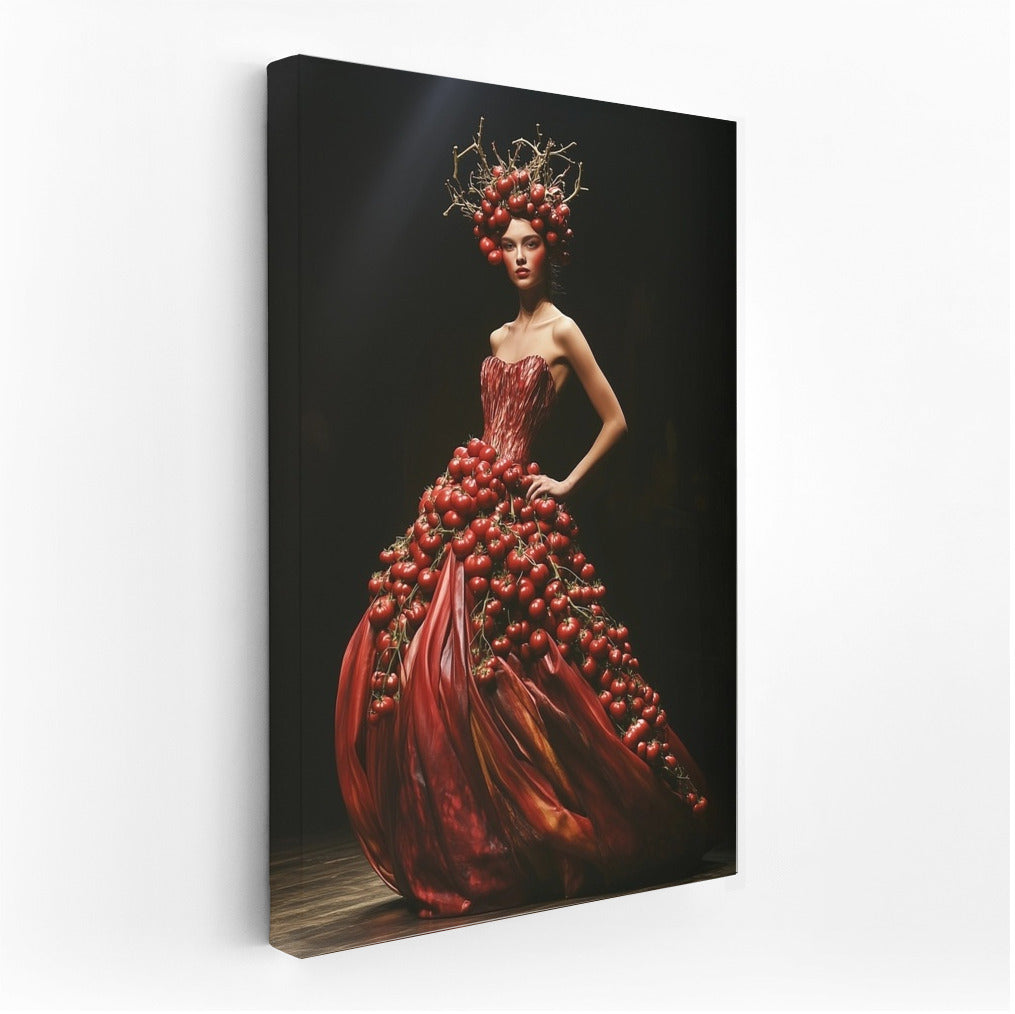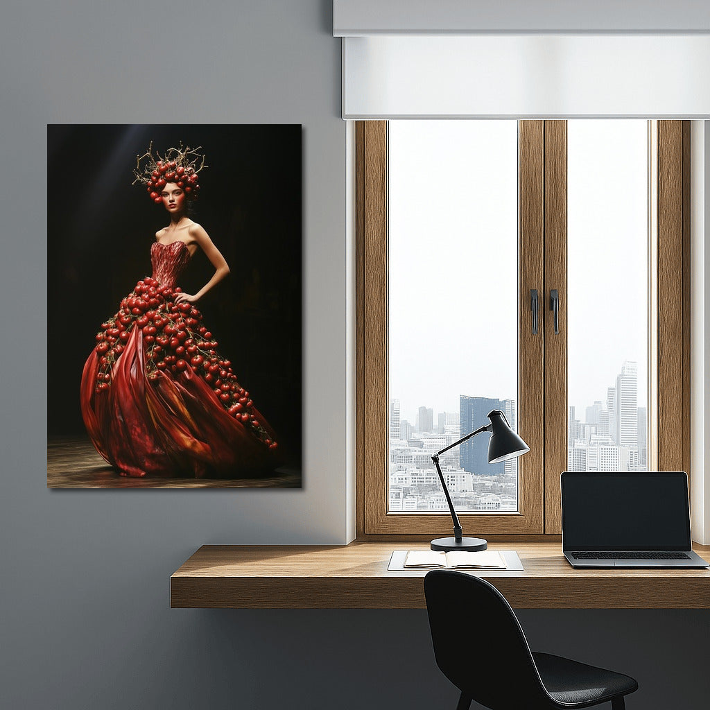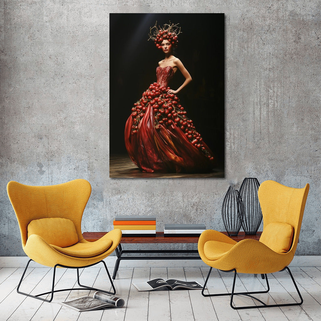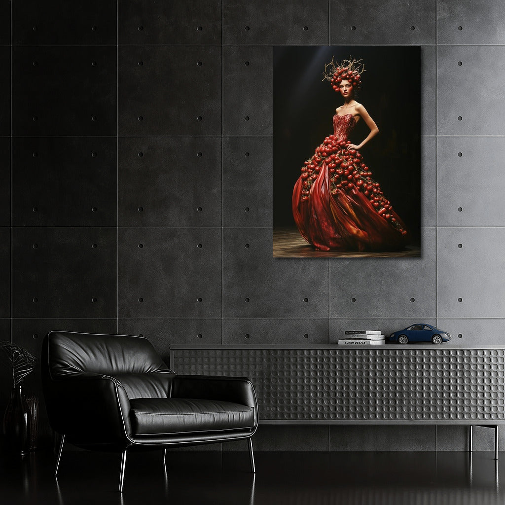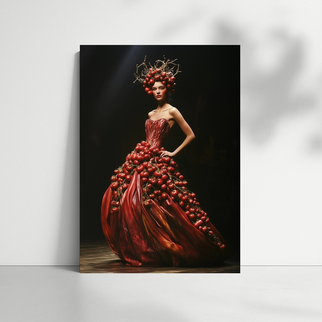 Elegant girl in a tomato dress. A perfect poster for lovers of extravagant wall art. See more from the collection: Red Flowers Art