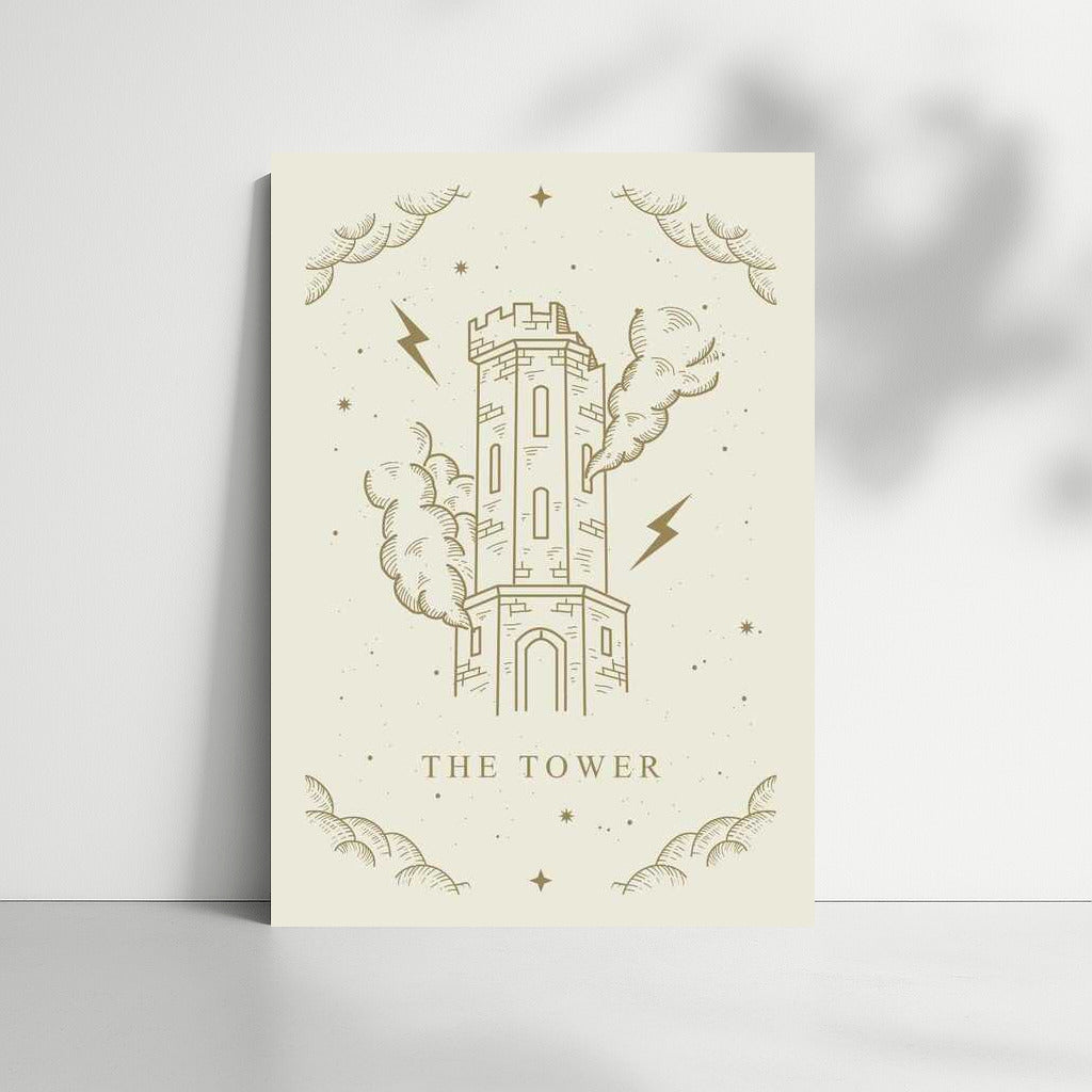 This tower poster with clouds and lightning is a magical wall art that adds a mysterious medieval atmosphere to your room. See more from the collection: Zodiac Sign & Astrology Art