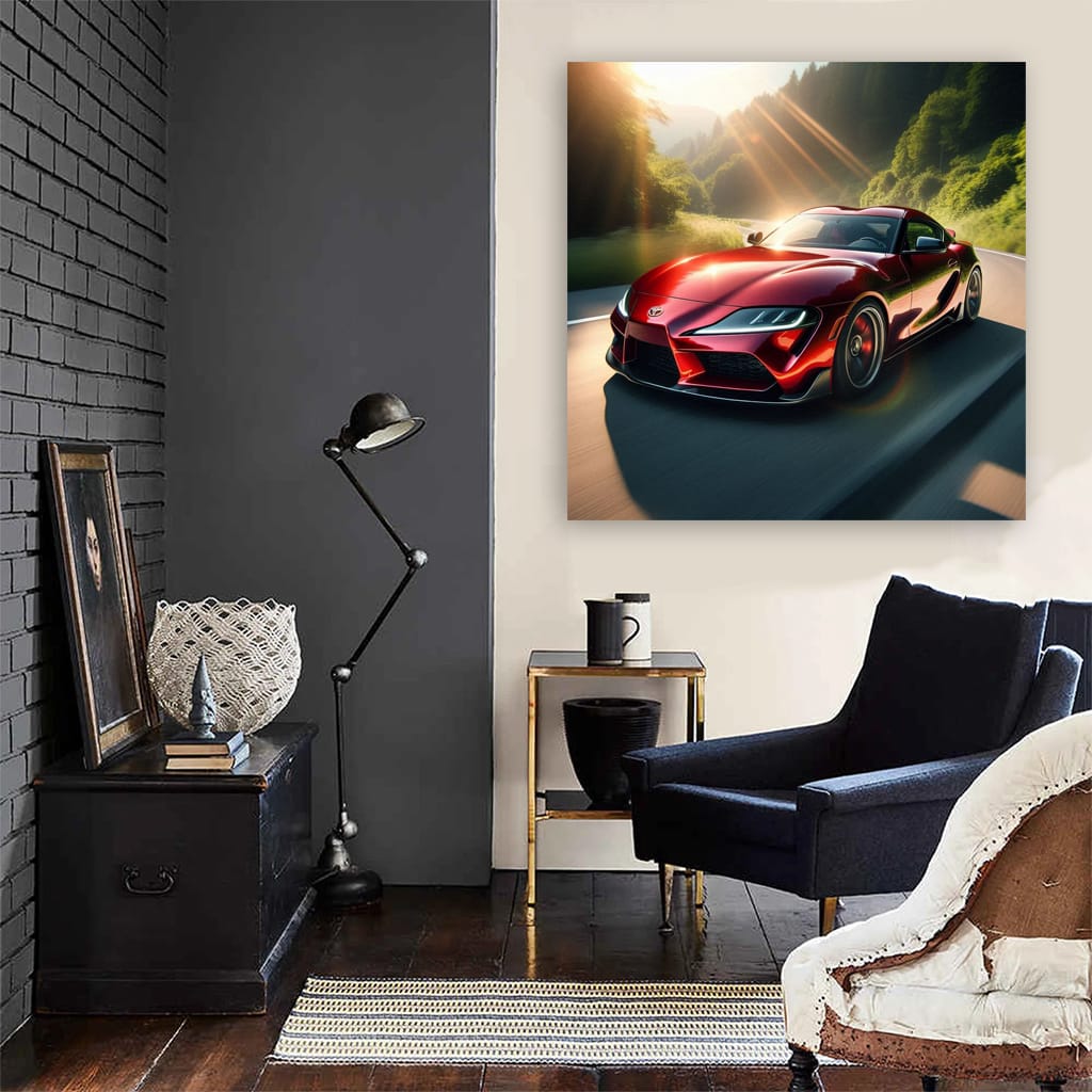 This poster is not just a painting, but a legend on the wall. Toyota Supra, as always, brutally attacks the road. Wall art for those who know a lot about real cars. This is not just an image, this is a lifestyle, inscribed in every turn. See more from the collection: Toyota Art