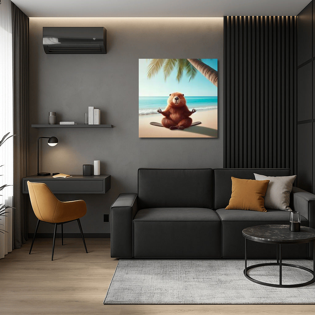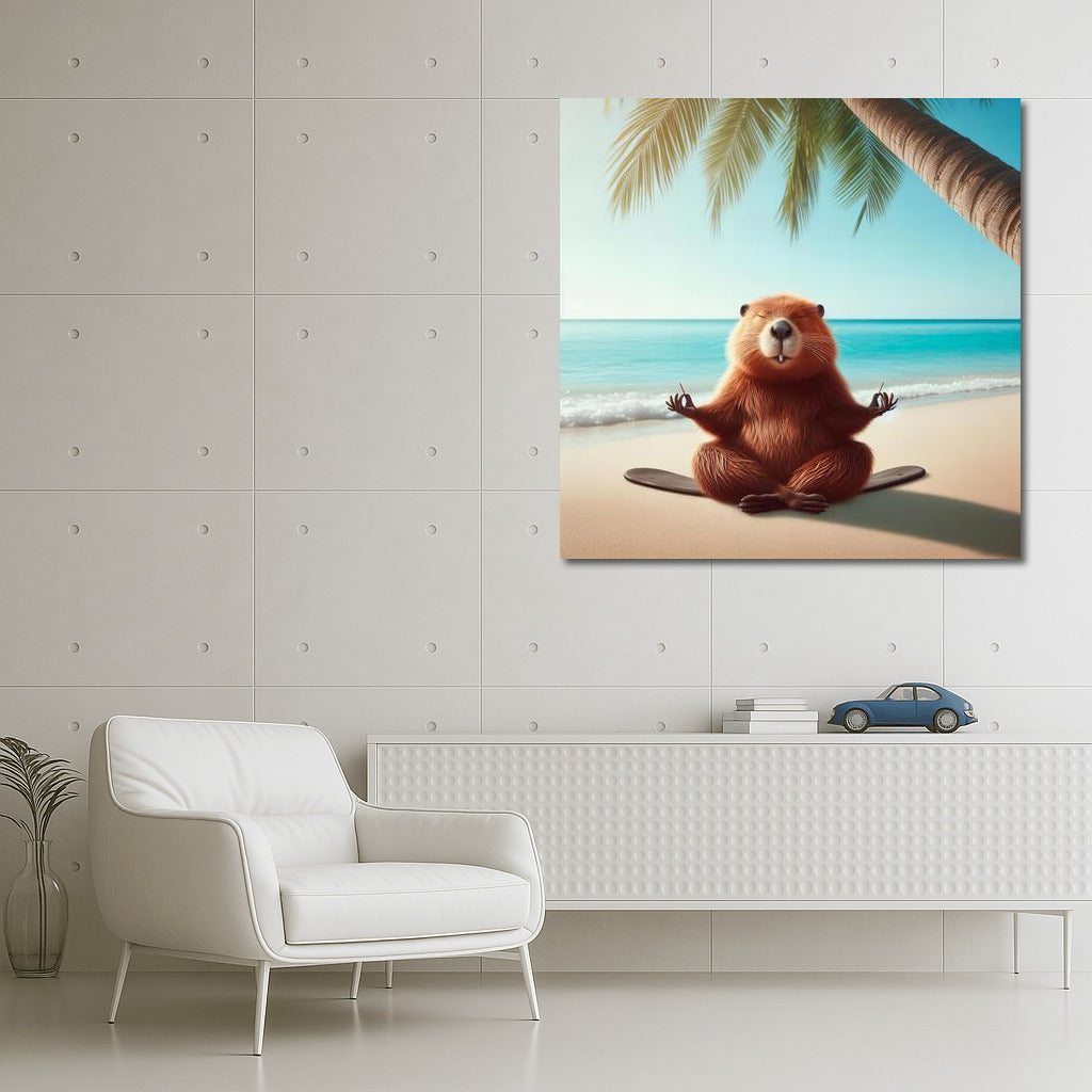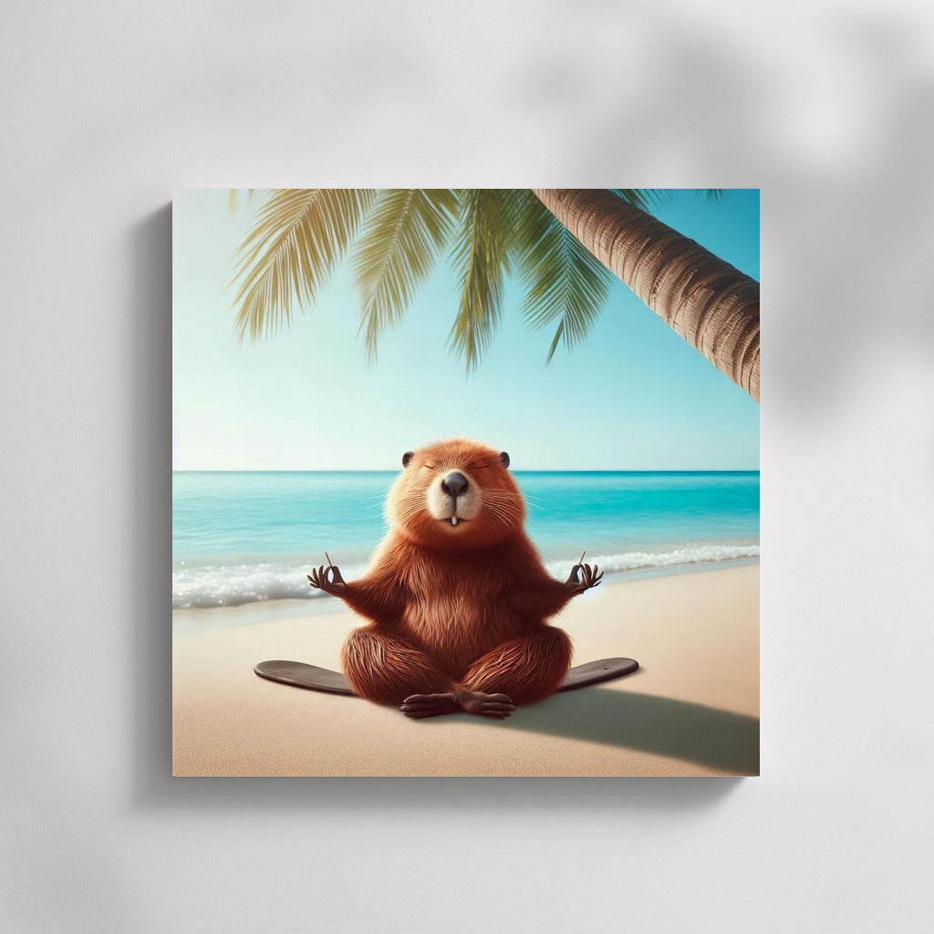 Tranquility on the Beach: Meditating Beaver Wall Art