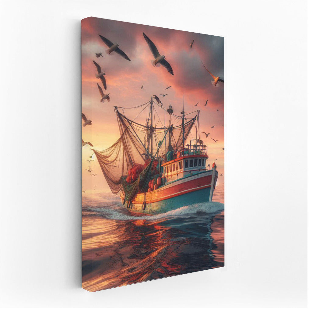 Trawlers in the Sunset Glow: Sea Symphony of the Evening Wall Art