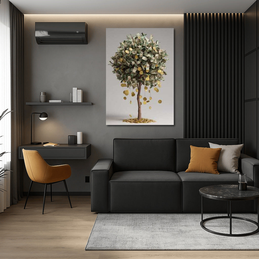Tree of Wealth: Money and Gold for Financial Growth Wall Art