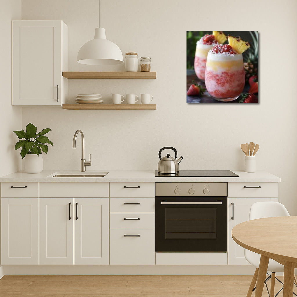 Dive into a tropical dream with the Fruity Drink poster. Juicy pineapples and sweet strawberry desserts will liven up your interior. See more from the collection: Coffee & Tea Art & Drinks