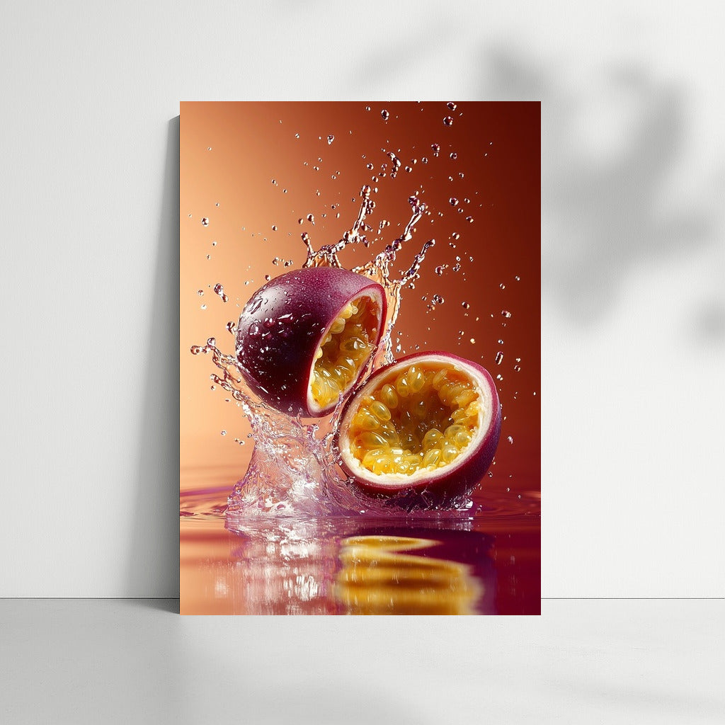A juicy splash of passion! A poster with a bright passion fruit will liven up any space. Wall art that literally charges with energy. See more from the collection: Food Art