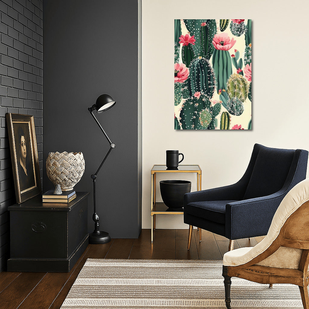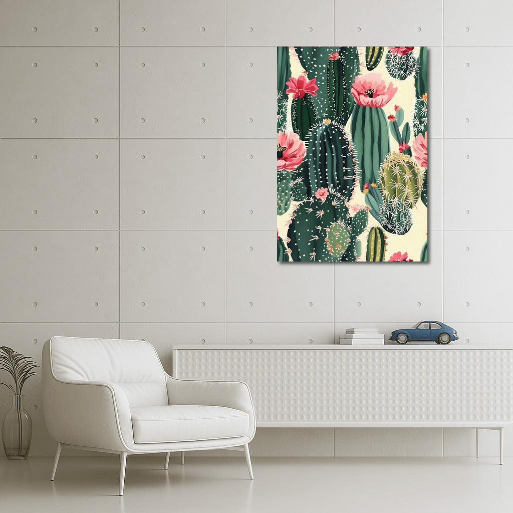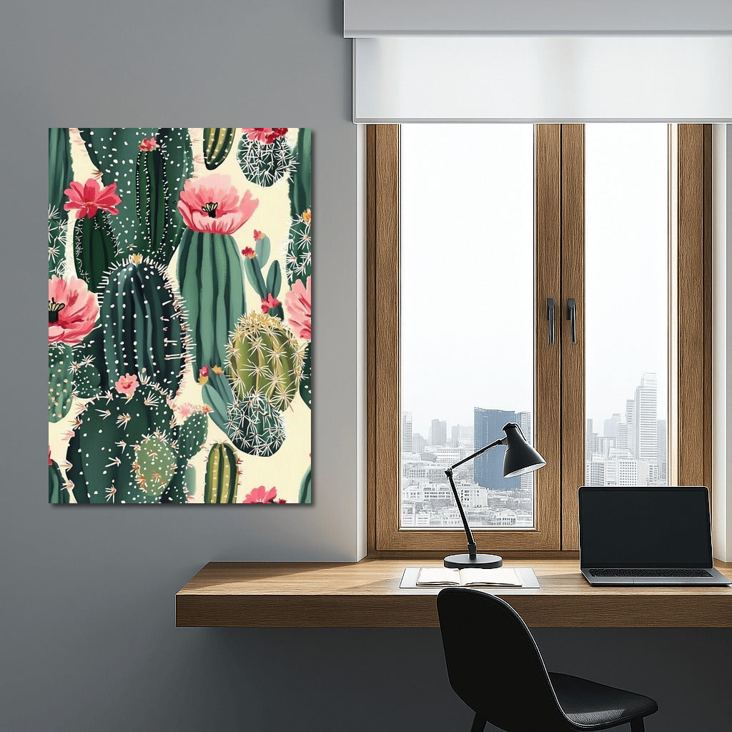 A bright poster with blooming cacti will add freshness and exoticism to your wall art. Create an atmosphere of a tropical garden! See more from the collection: Cactus Art