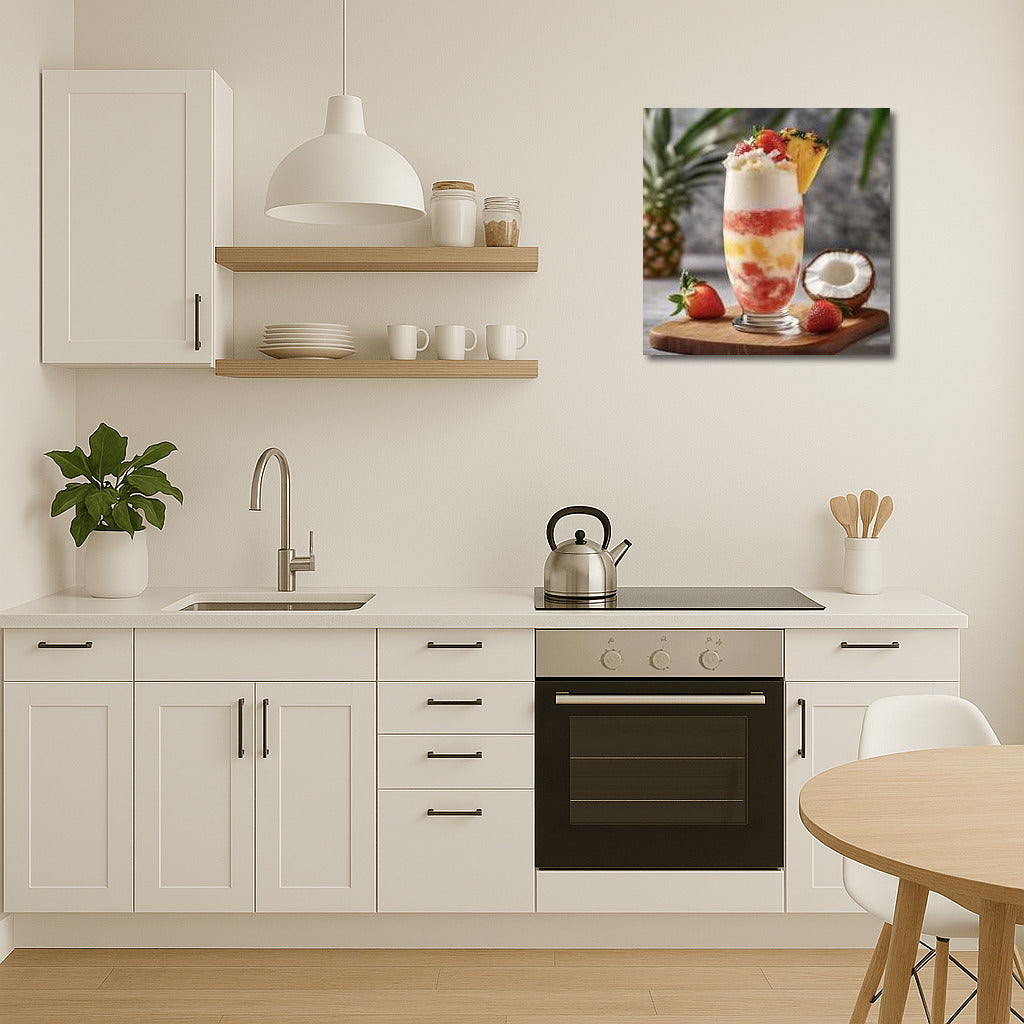 A delicate fruit dessert in a glass. This poster will fill your home with juicy shades and inspiring tropical freshness. See more from the collection: Coffee & Tea Art & Drinks
