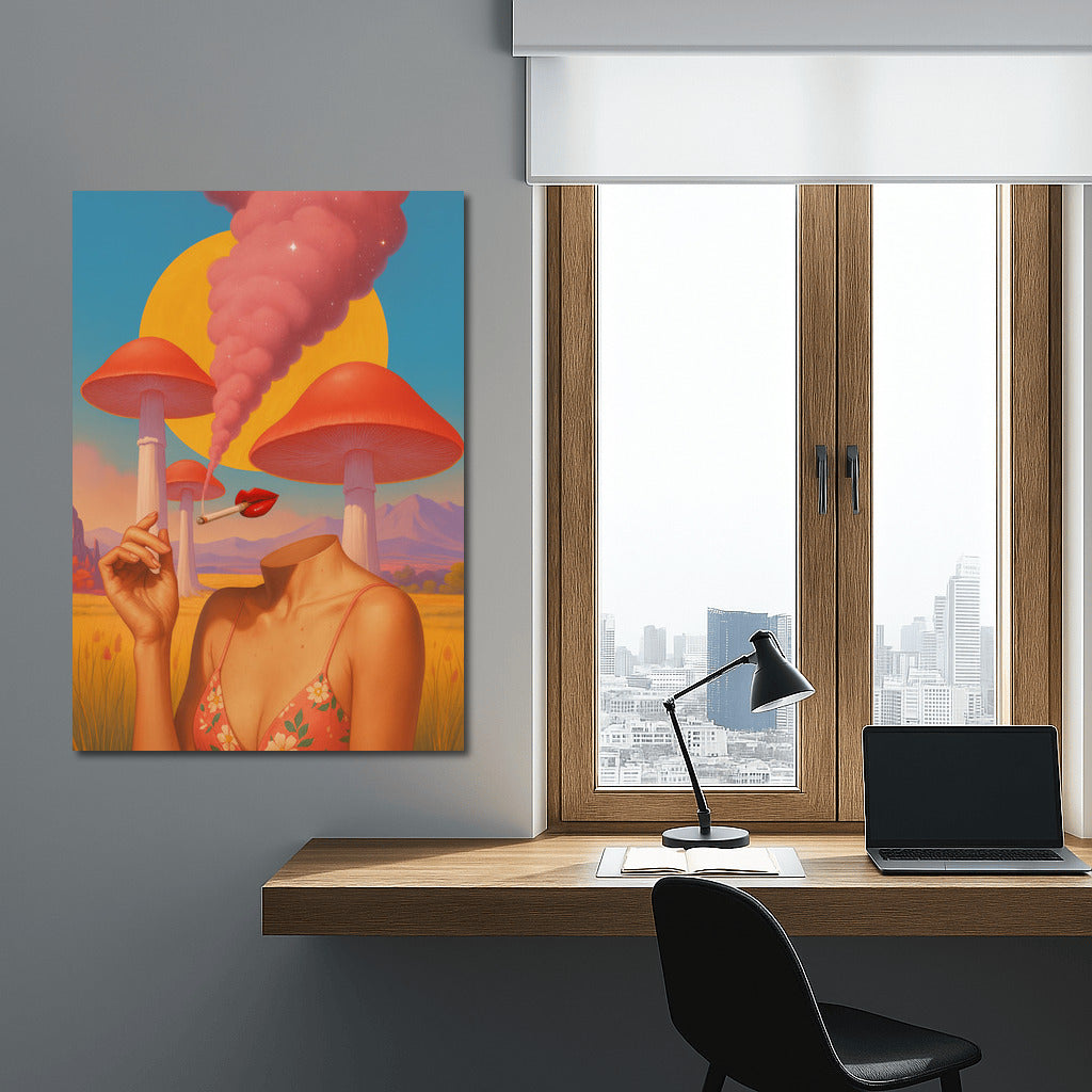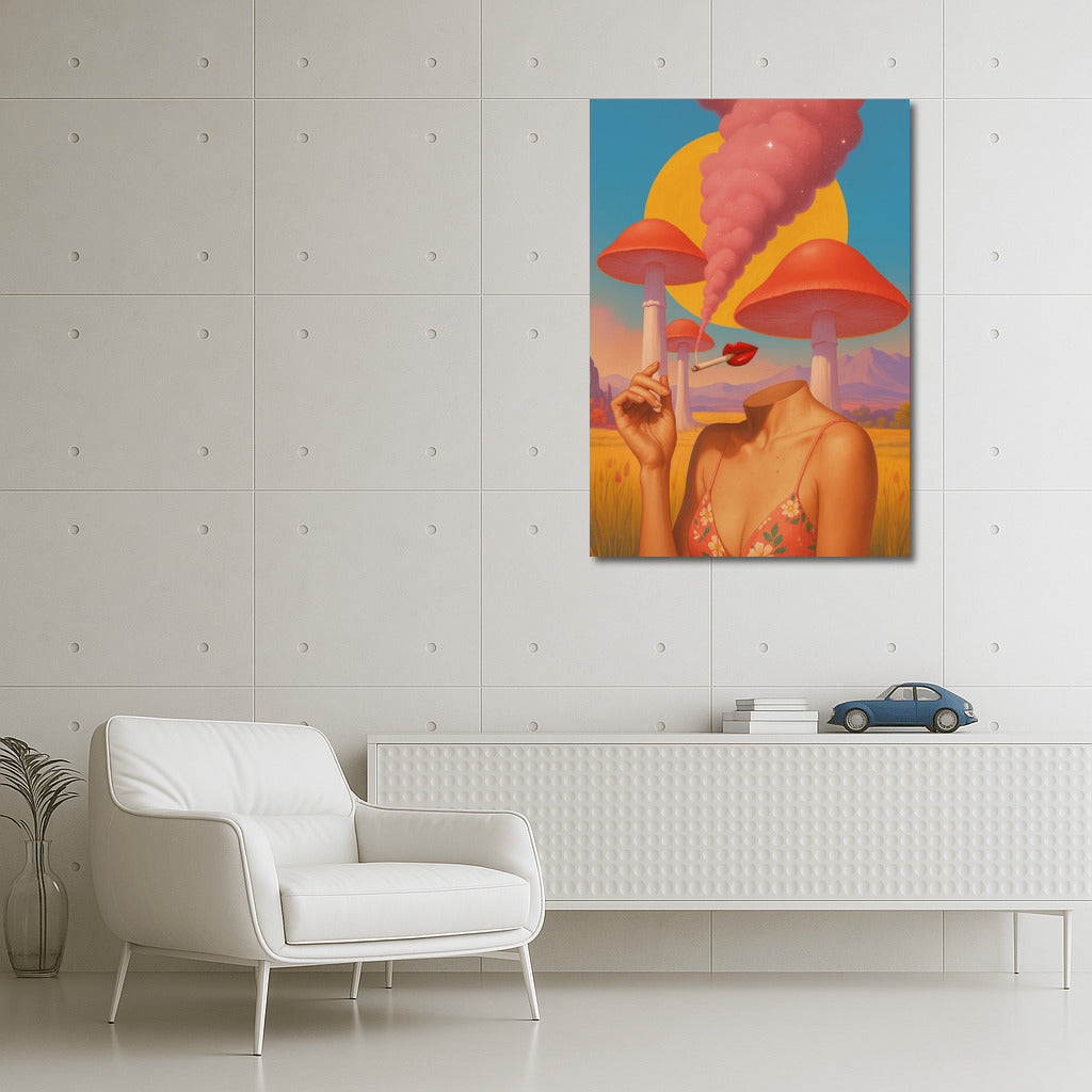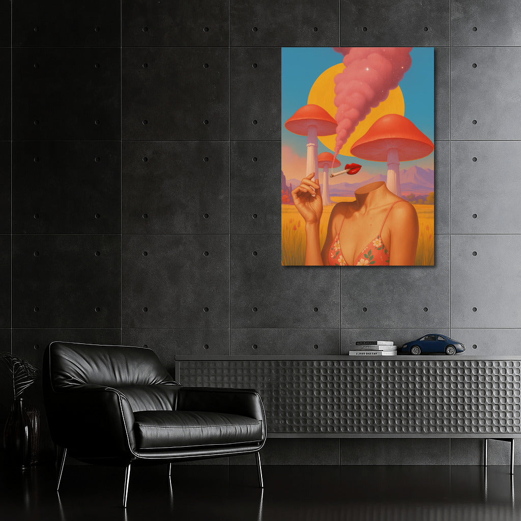 Dive into a world of illusions with this tropical poster. Mushrooms and smoke create a fantastic wall art. See more from the collection: Trippy & Psychedelic Art