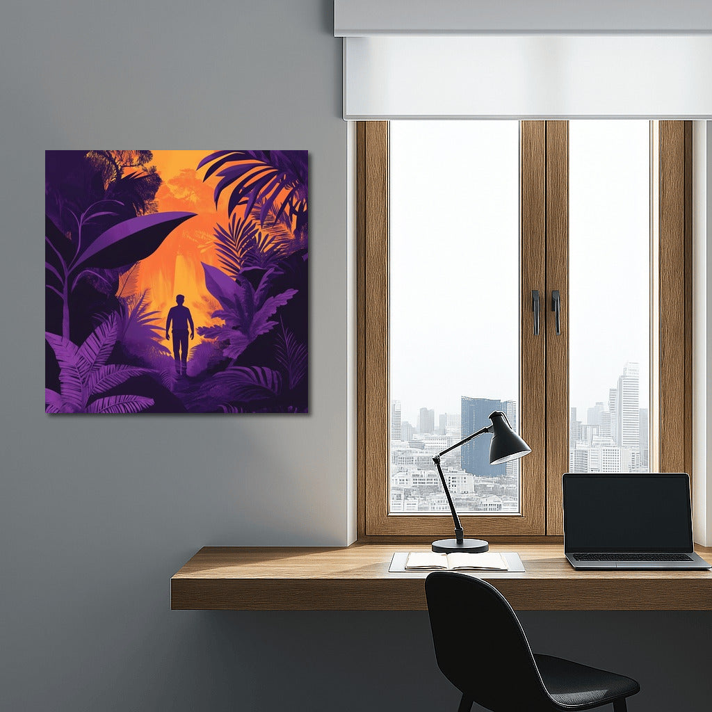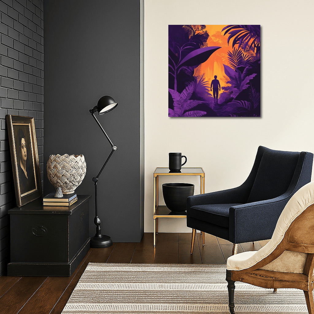 Explore the magic of the jungle with the mysterious wanderer poster! Bright colors and dynamics of nature for your interior. See more from the collection: Mixed Wall Art