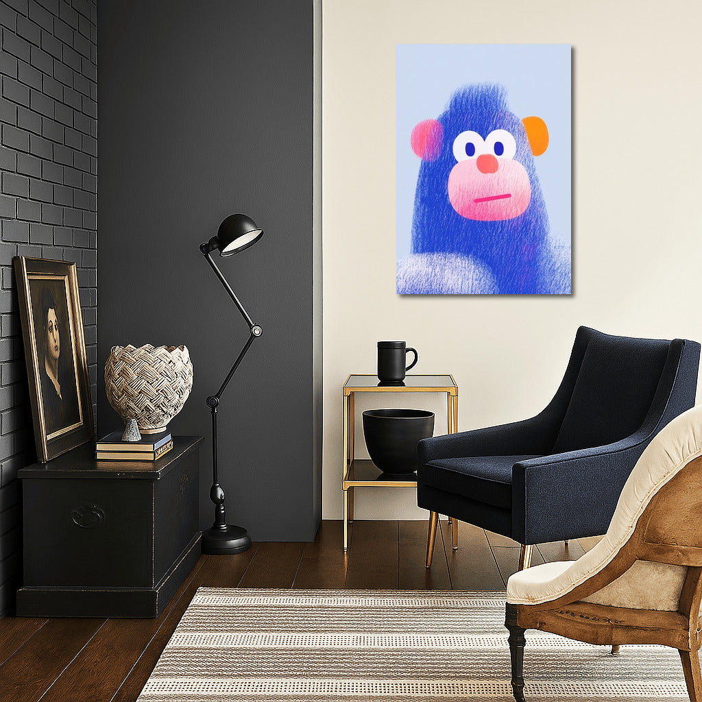 A bright poster with a funny monkey in pink and blue tones is an unusual wall art for your interior. See more from the collection: Mixed Wall Art