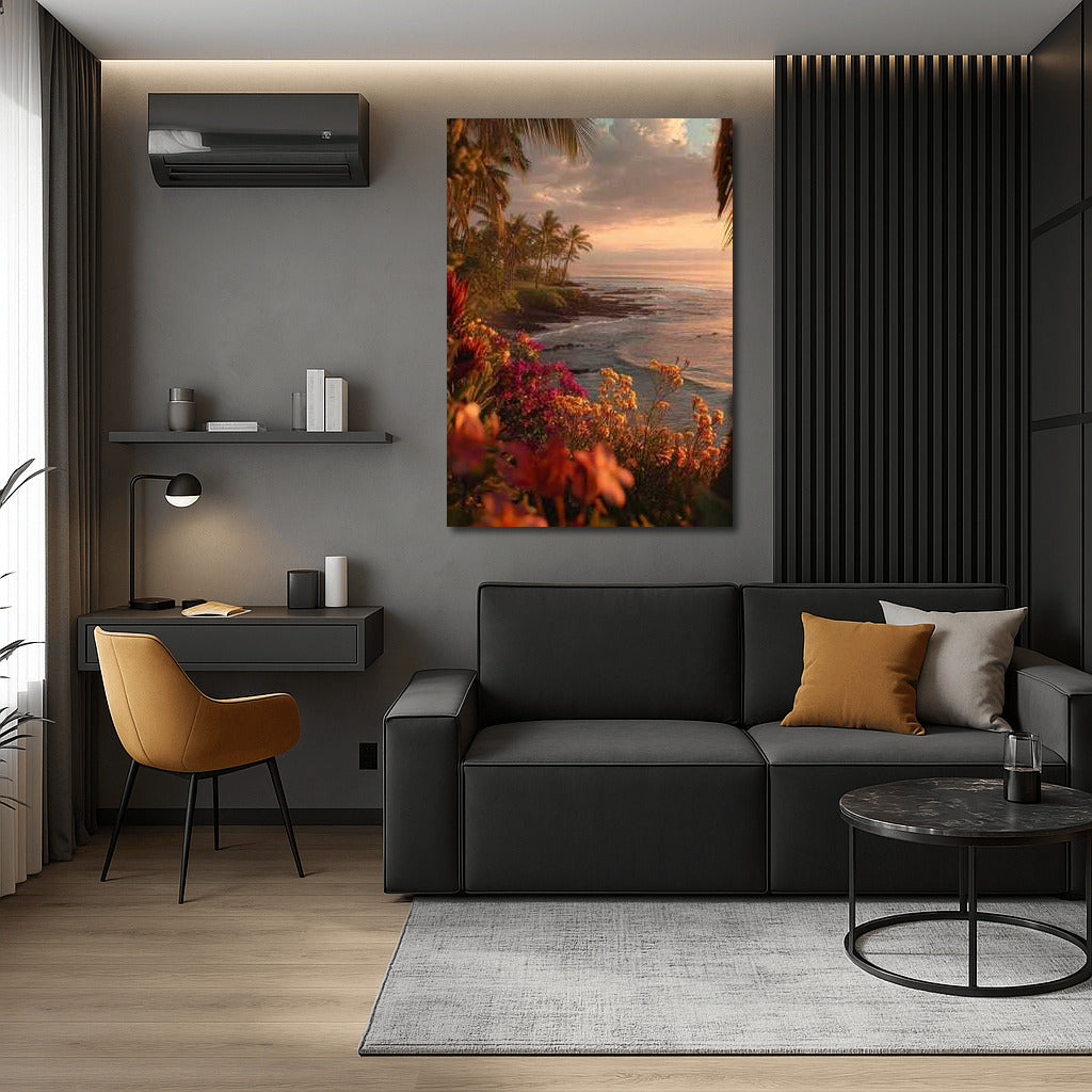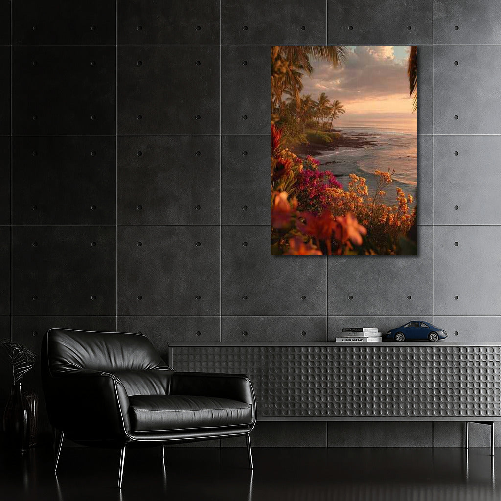 A warm sunset over the Pacific coast of Hawaii. This wall art invites you to a world of tropical harmony. See more from the collection: Country Art