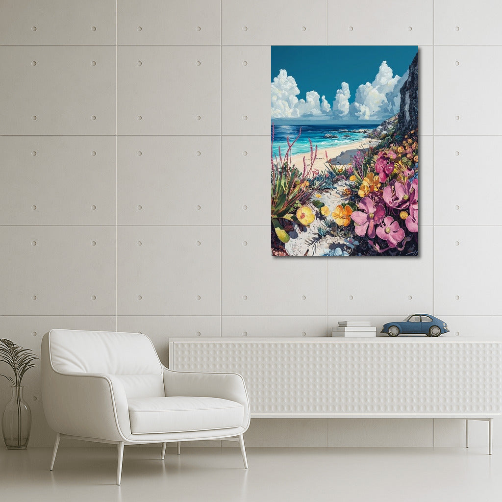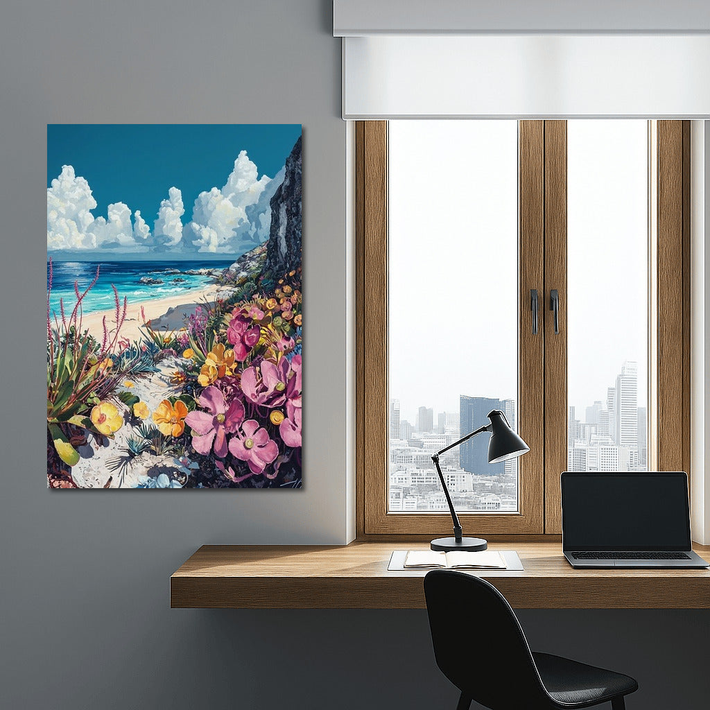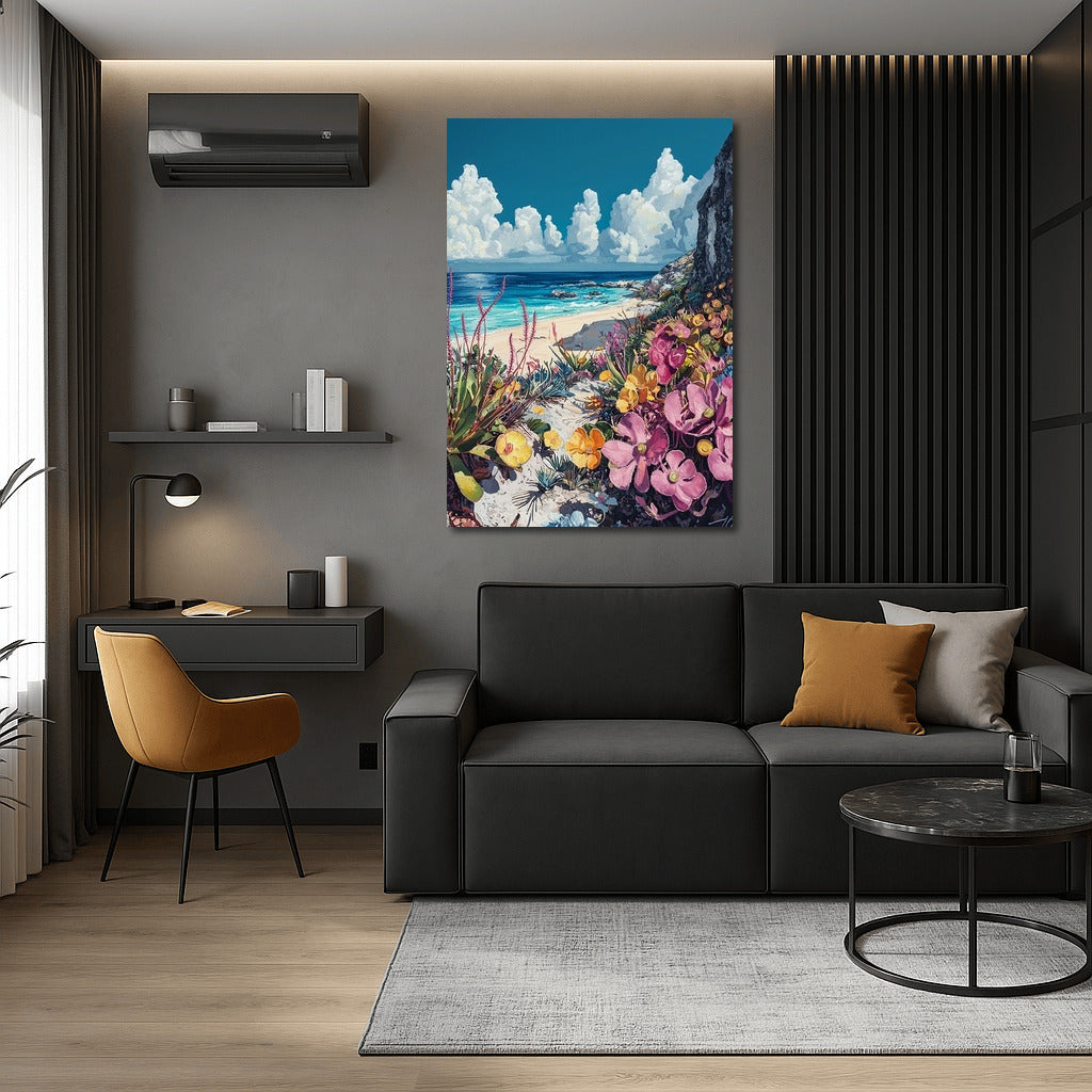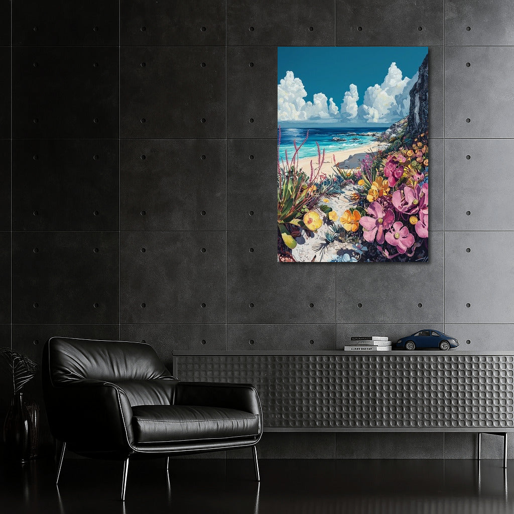 Be transported to a tropical beach with vibrant colors and waves. This poster is the perfect accent for your wall art! See more from the collection: Beaches, Oceans & Coastal Views Art