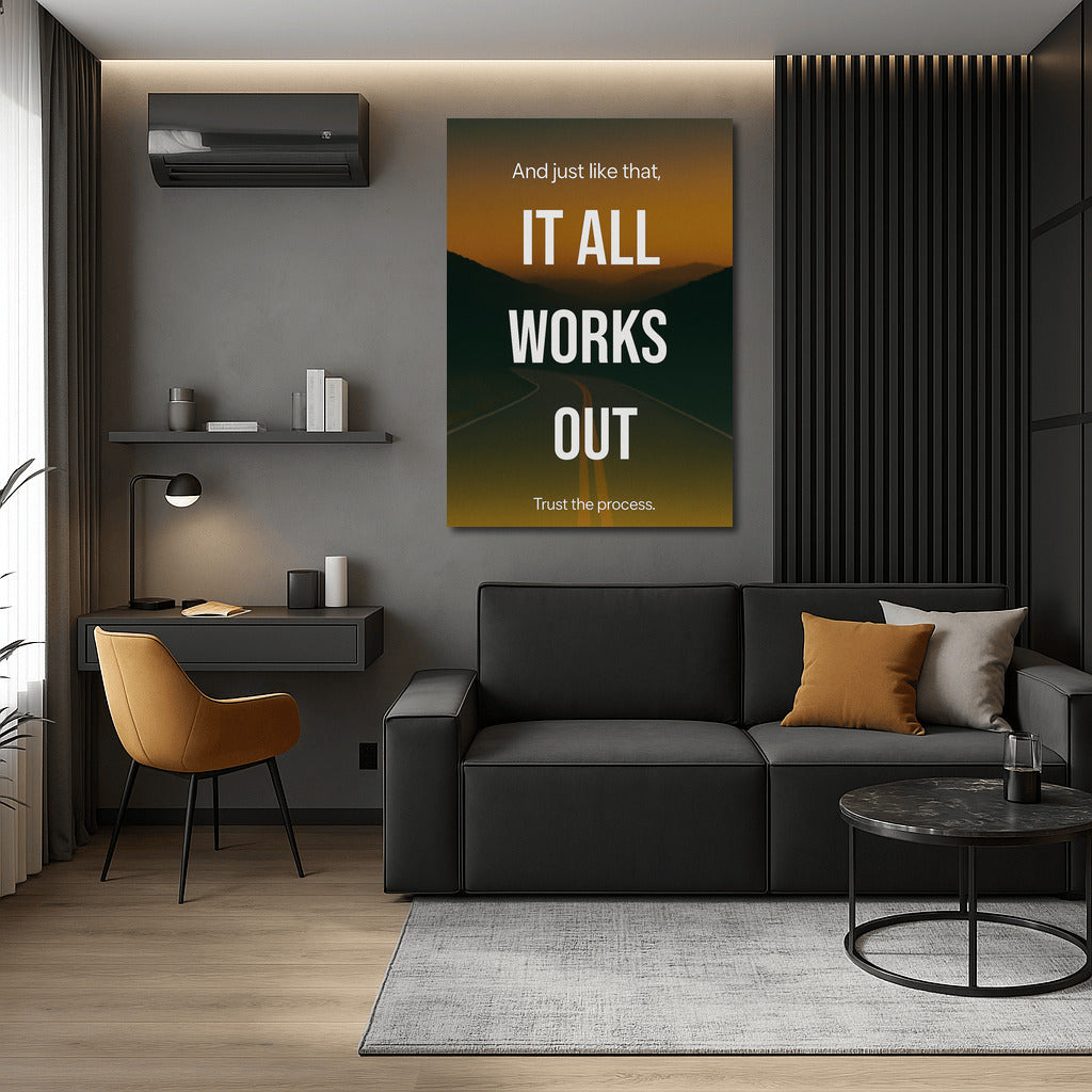 Abstract painting And it all came together. Wall art that motivates you to trust the process and believe in a successful outcome. See more from the collection: Inspirational & Motivational Quotes Art