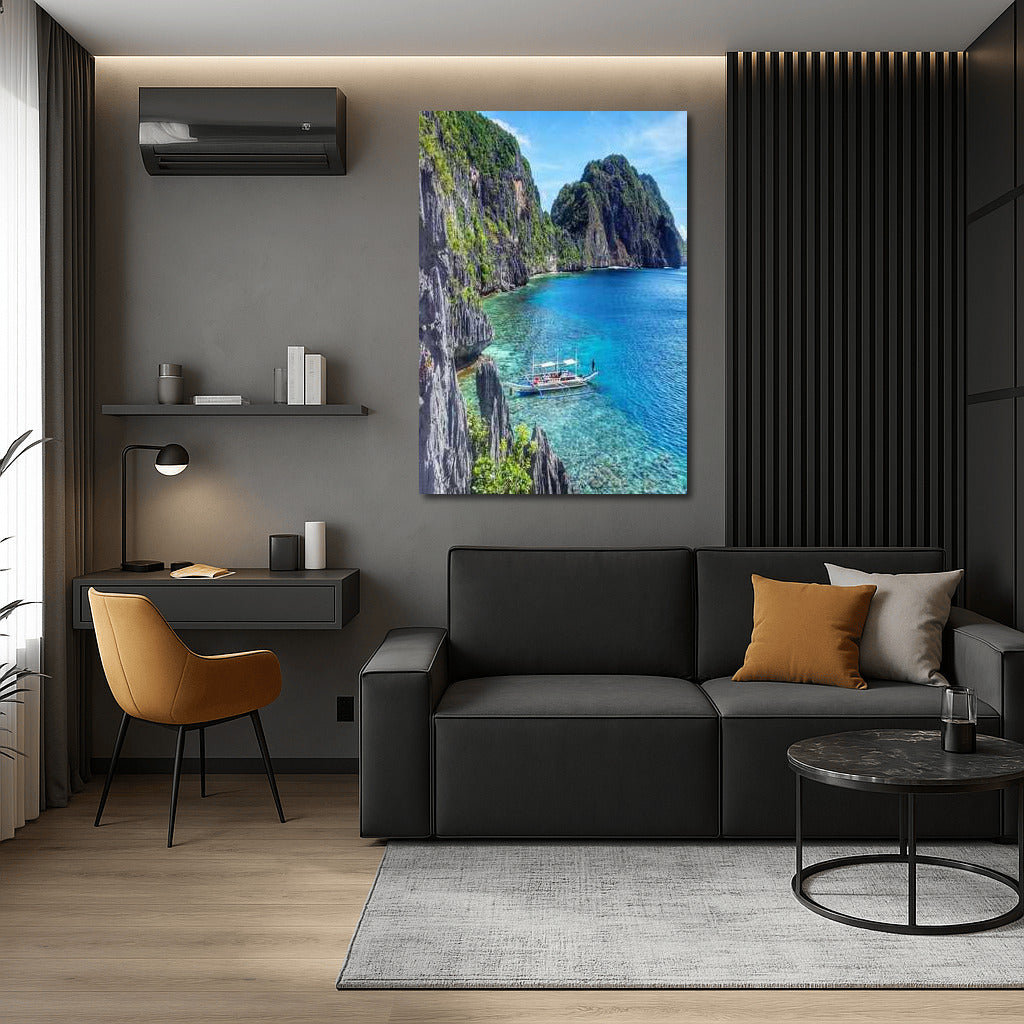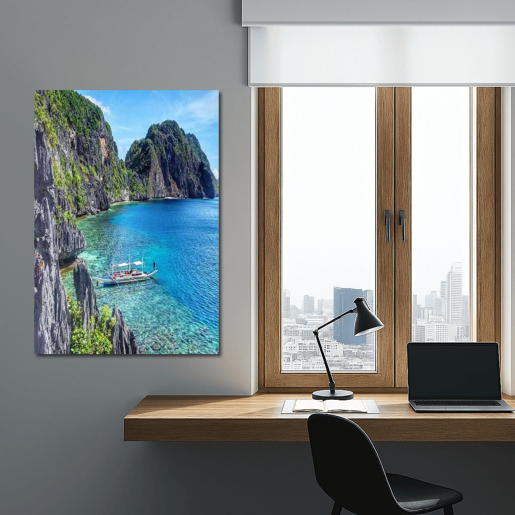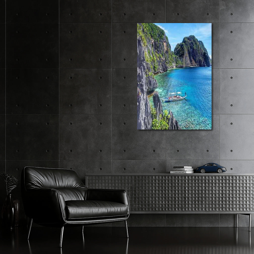 Immerse yourself in the scenic beauty of the Philippines with this painting: turquoise sea and majestic cliffs will bring your space to life. See more from the collection: Country Art