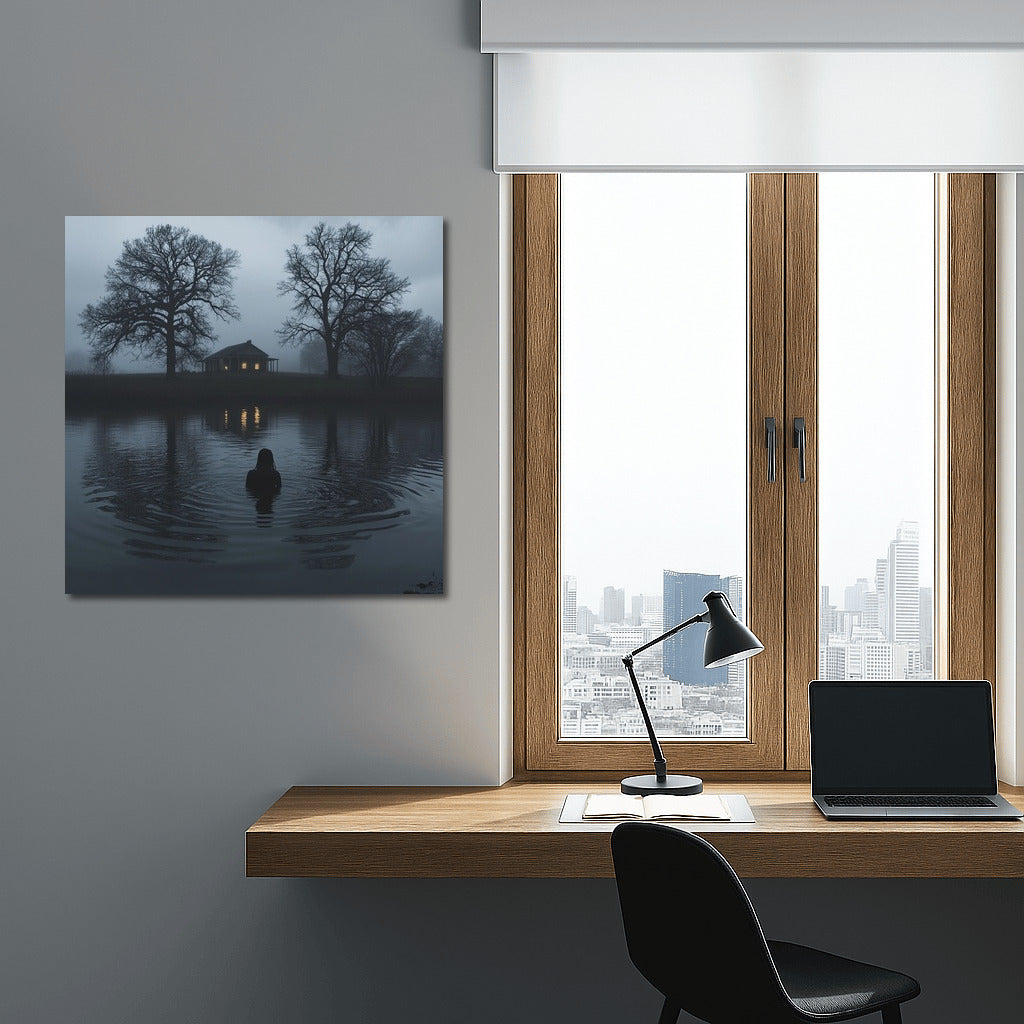 Immerse yourself in the magic of a gloomy evening: a poster of a girl at a mysterious house, where nature comes alive in every shadow. Dream wall art. See more from the collection: Mixed Wall Art