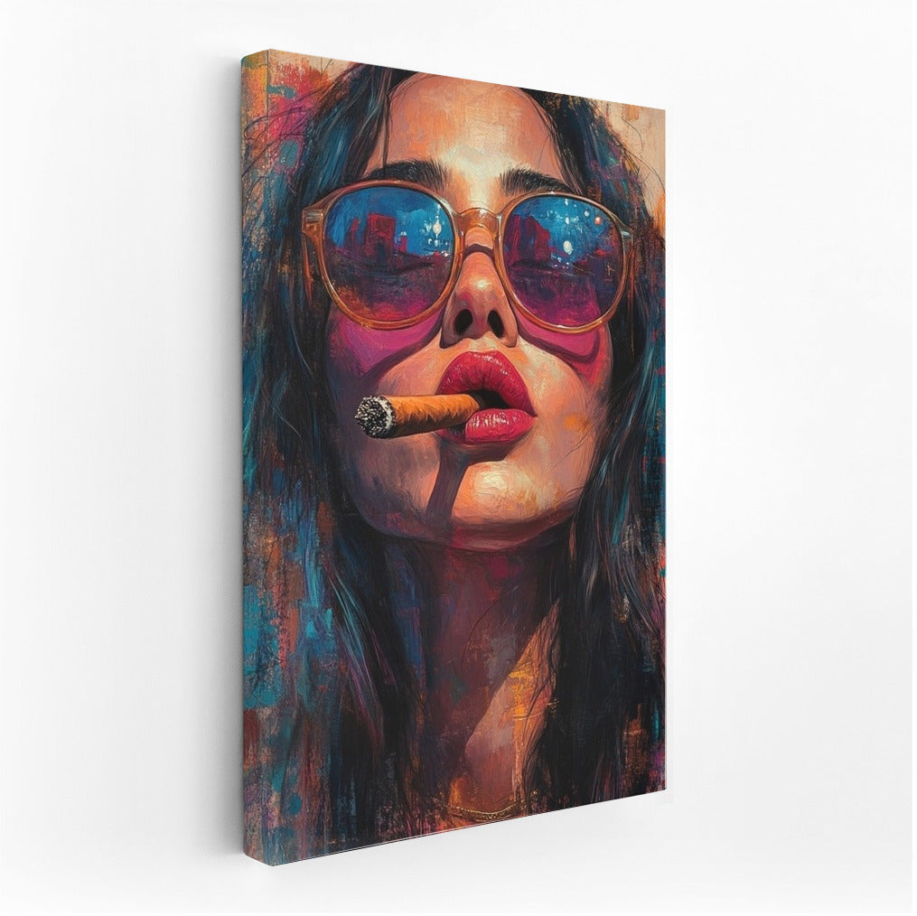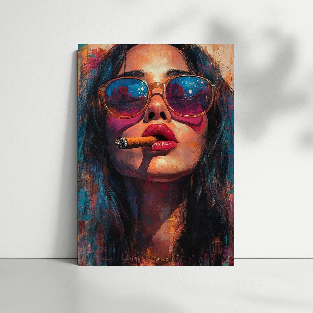 A vibrant portrait: a confident personality in the shades of city lights. Wall art that will liven up any interior. See more from the collection: Wall Art with Women