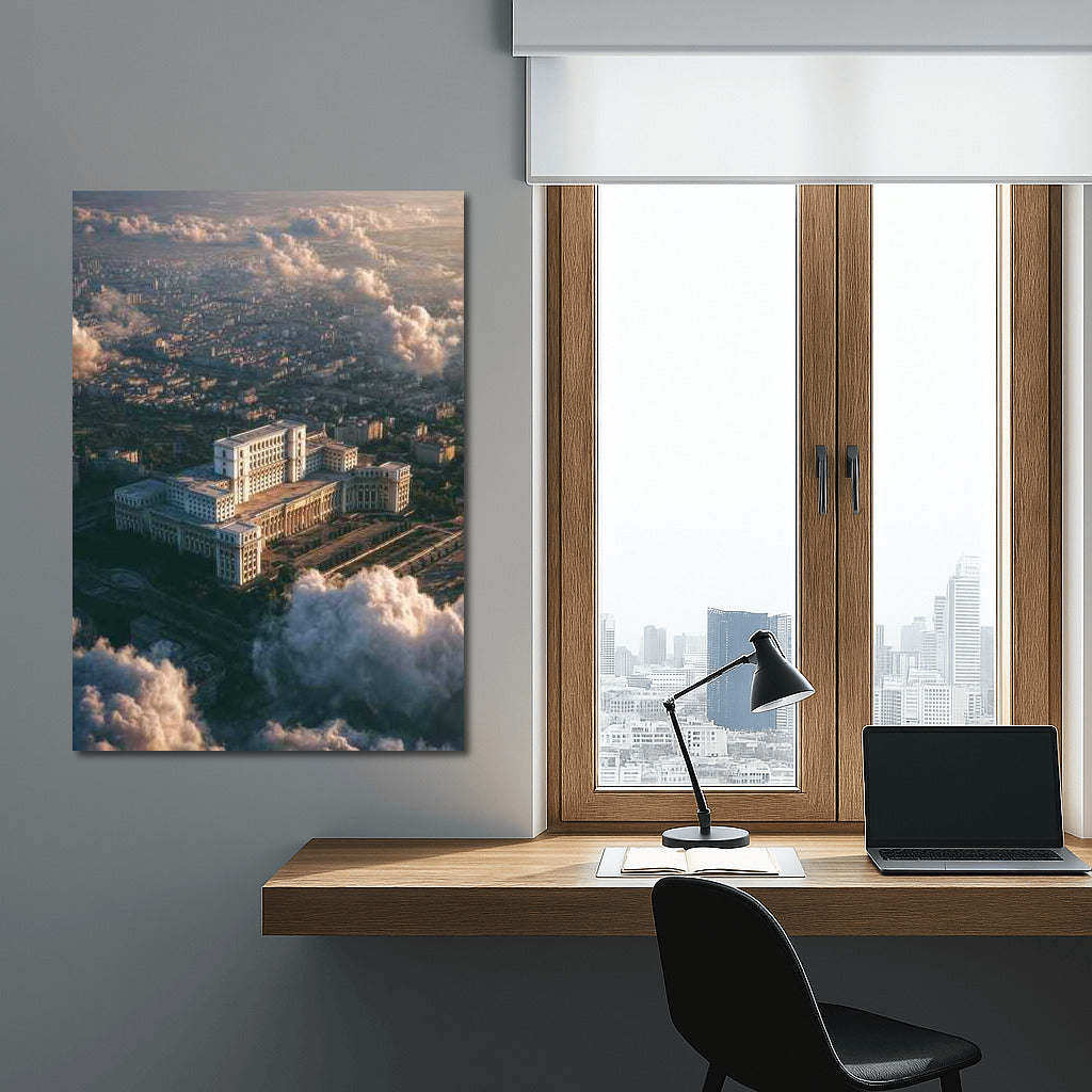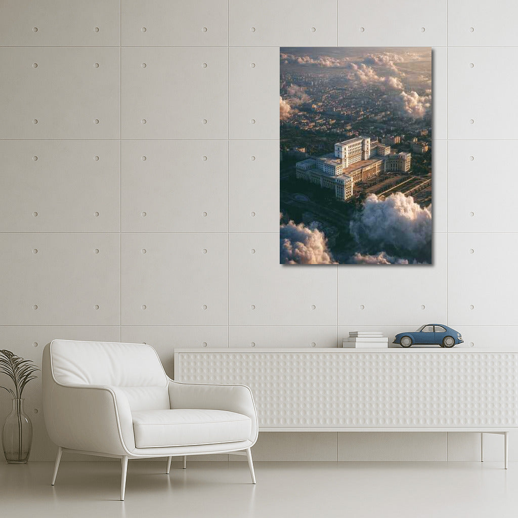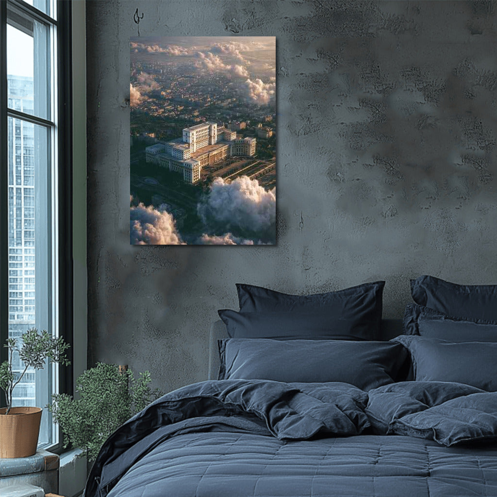 Dream above the clouds with this poster where the city and architecture merge in a magical dance. Pop art for your space! #AllWallart See more from the collection: Cityscapes & Skylines Art