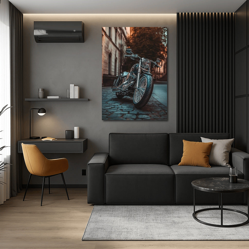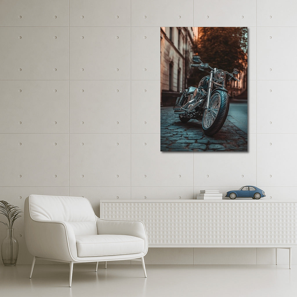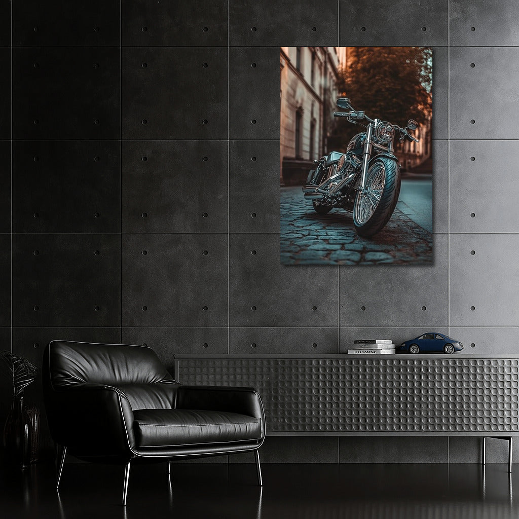 Dynamic and stylish: Harley-Davidson motorcycle poster. Wall art that embodies freedom against the backdrop of city streets. See more from the collection: Harley-Davidson Motorcycle Art