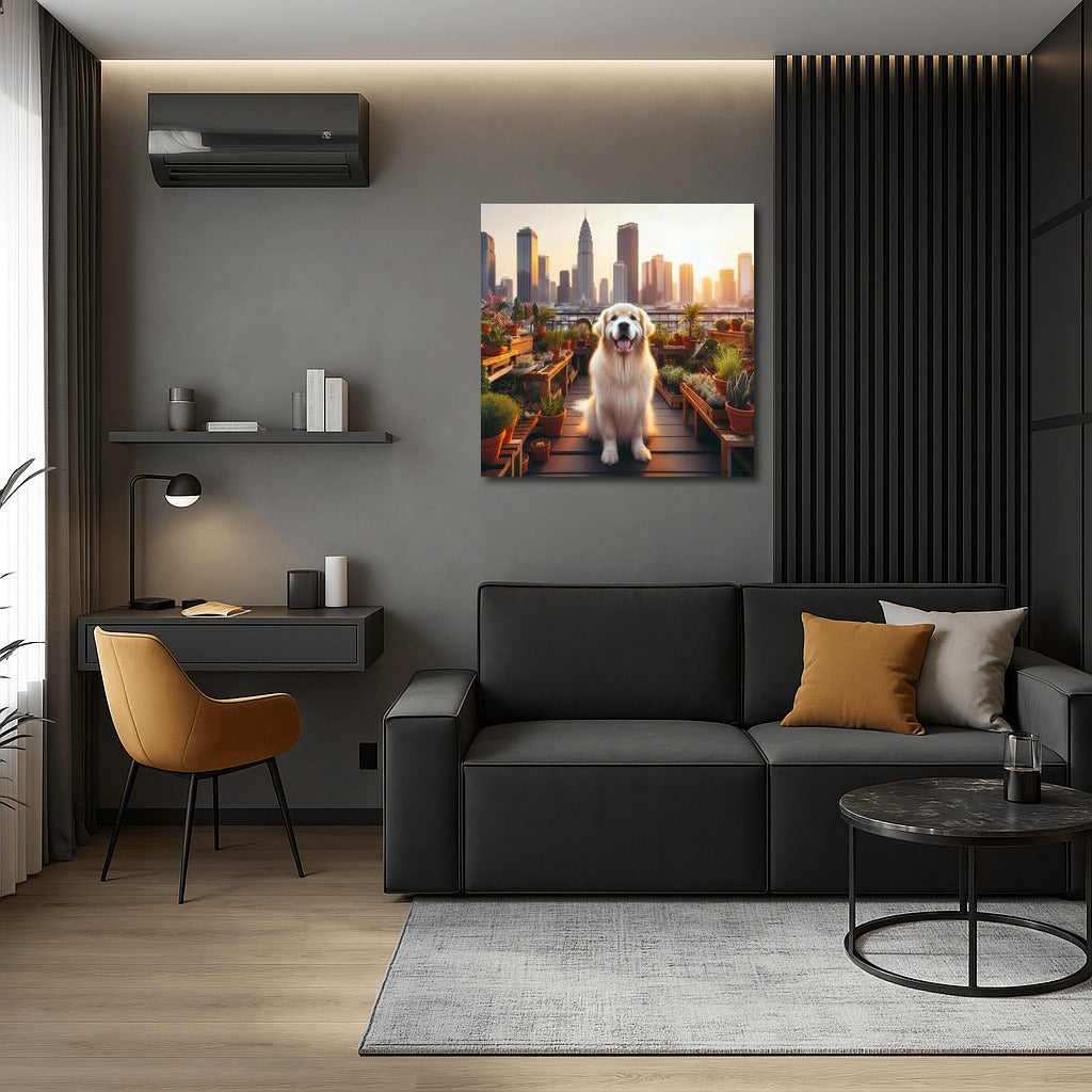 Urban Oasis: Dog on the Roof in the Embrace of Skyscrapers Wall Art