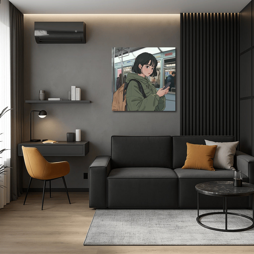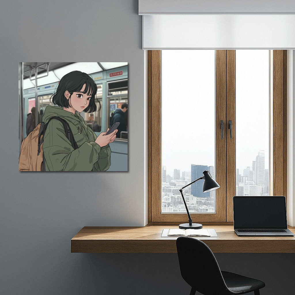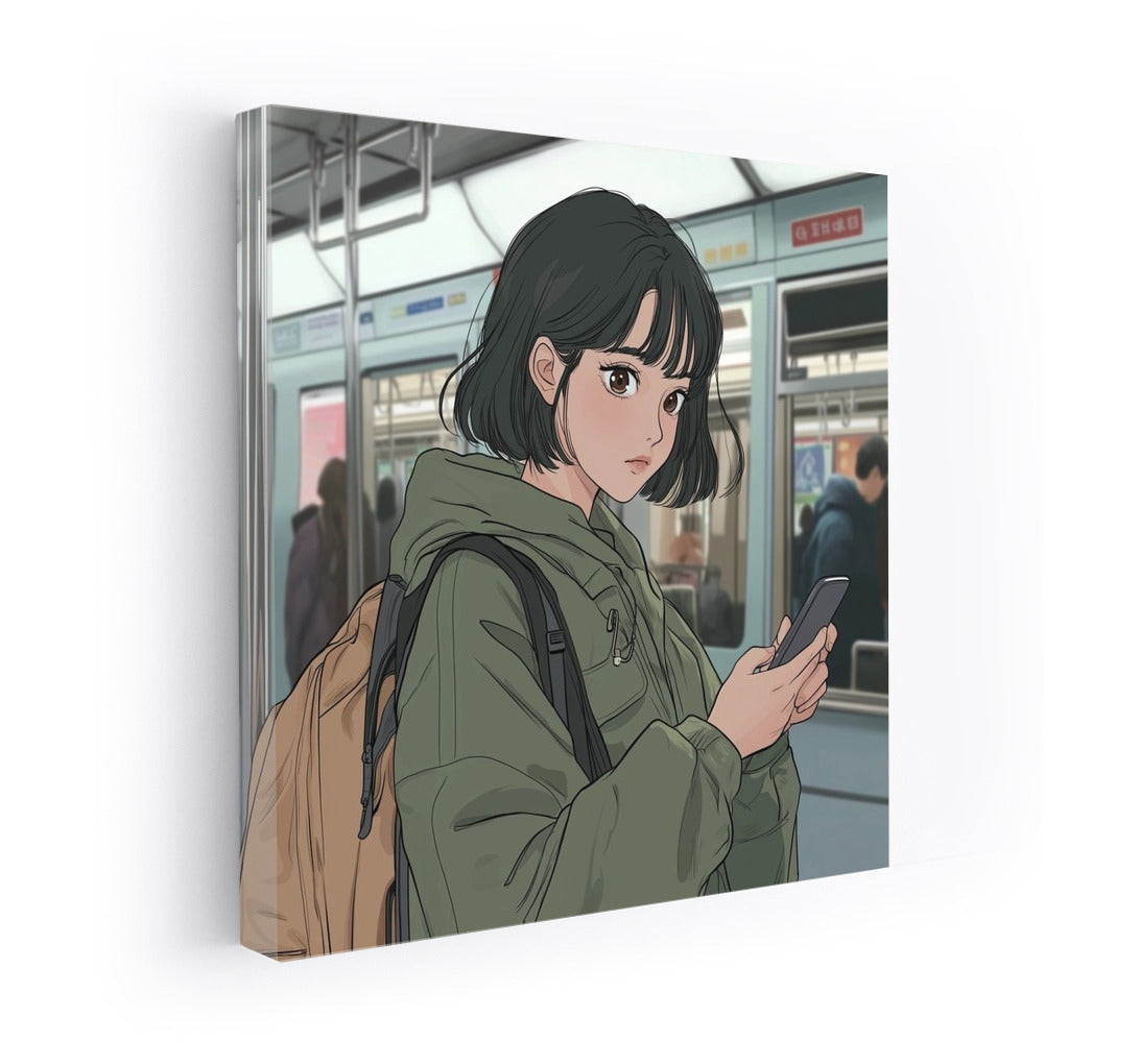 Inspirational poster: a modern traveler on the subway, lost in thought. A perfect accent for your wall art. See more from the collection: Anime & Manga genres Art