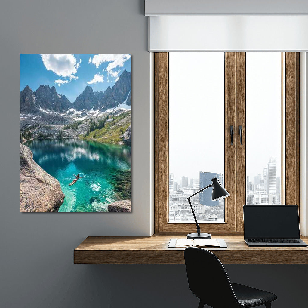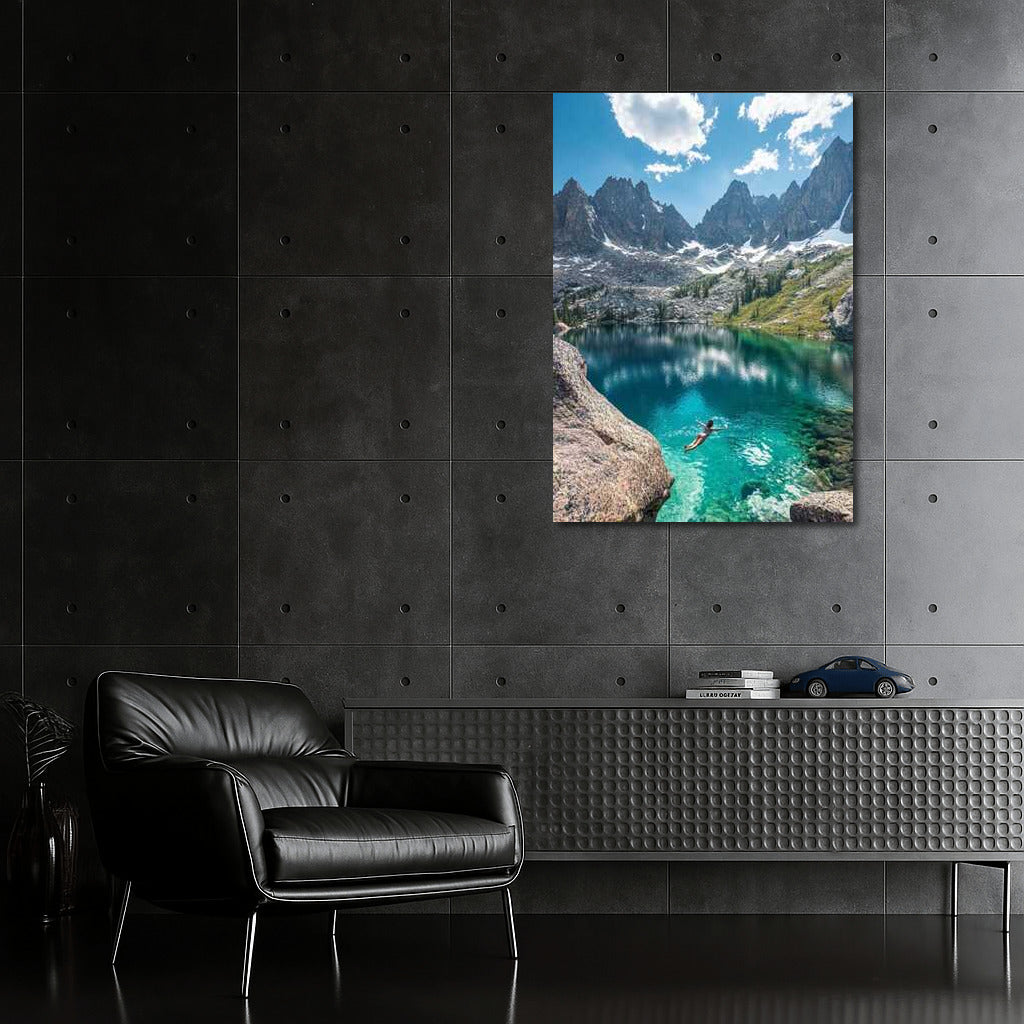 Dive into an emerald lake beneath the Utah mountains. Wall art that fills the home with the harmony and freshness of nature. See more from the collection: Country Art
