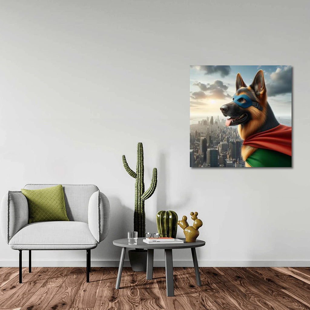 Valiant Dog-Defender: Superhero on Guard of the City Wall Art