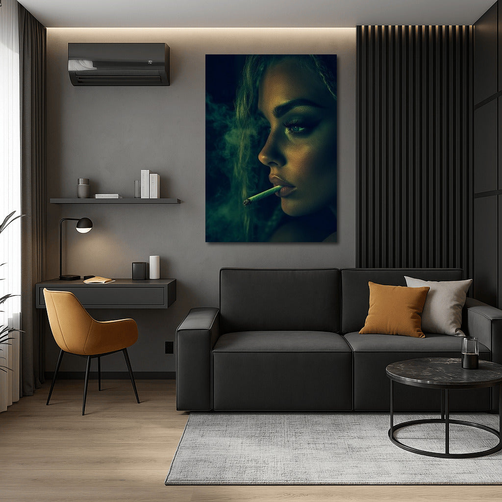 Mystery and haze: a mysterious painting where shadows and light intertwine around the image, creating an atmosphere of calm and intrigue. Wall art. See more from the collection: Mixed Wall Art