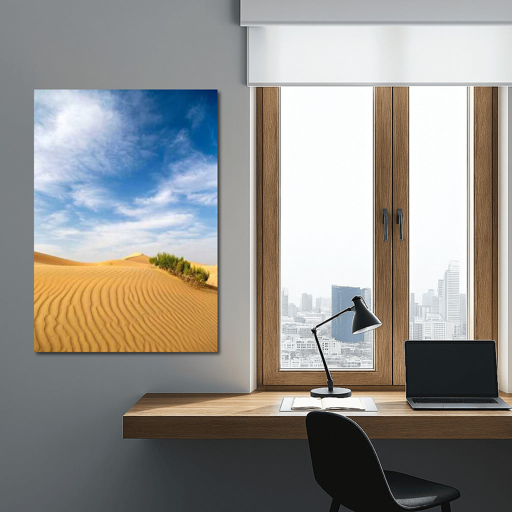 Oasis of calm: painting with velvet dunes and endless sky. Inspiration for your space. See more from the collection: Deserts & Sandscapes Art