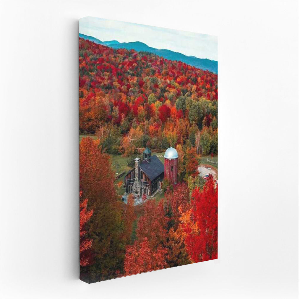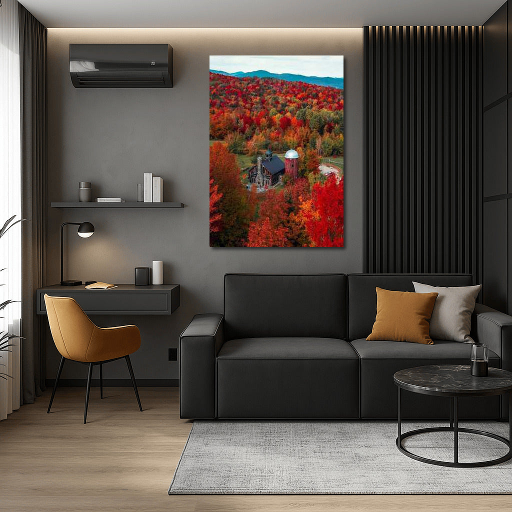 A vibrant Vermont fall landscape bursts into the interior. Wall art where nature and tranquility live in harmony. See more from the collection: Country Art