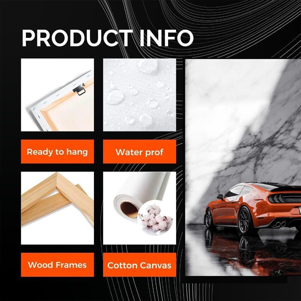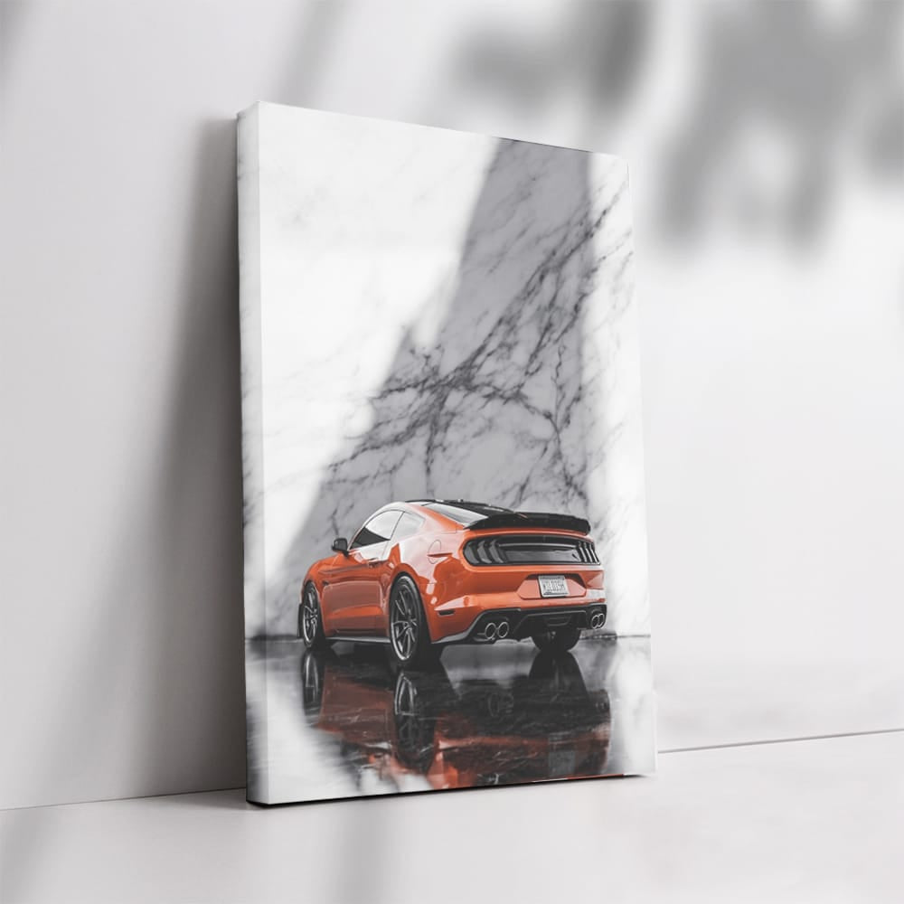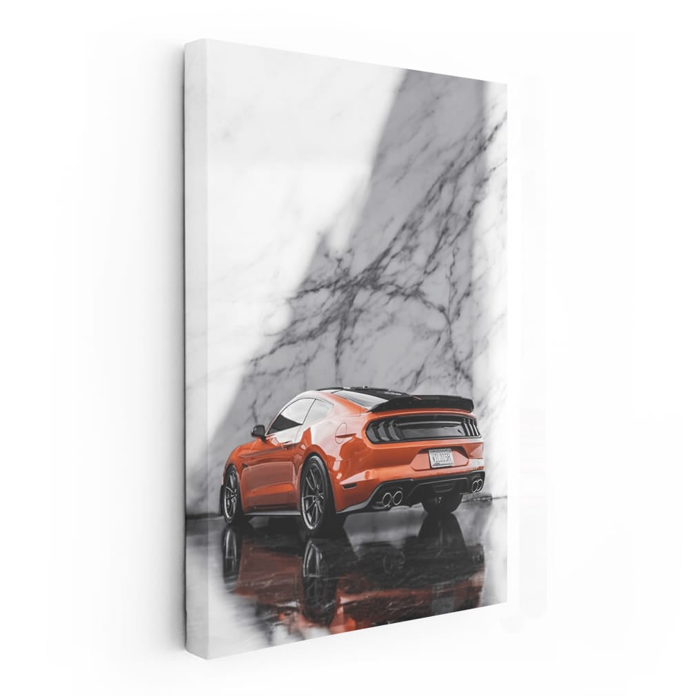 Hey, bro! This poster is the bomb! The orange Mustang on the marble background is every car fan's dream. Wall art that will take your breath away. This poster has so much adrenaline that it seems like the engine is about to roar. Will decorate any garage lair! See more from the collection: Ford Art