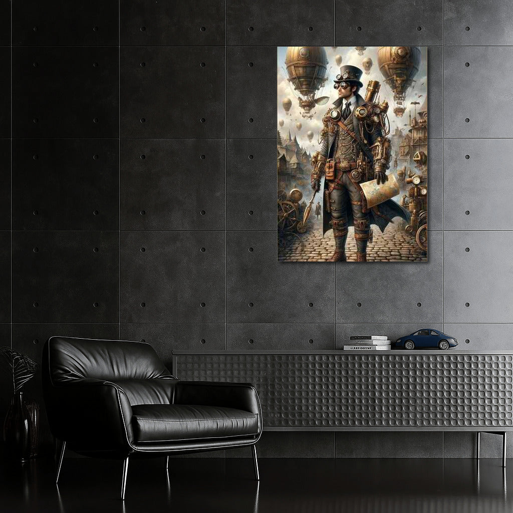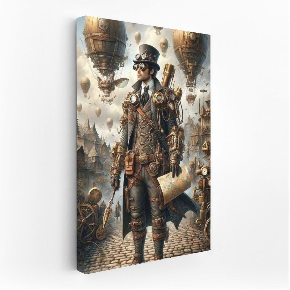 Dive into the world of Steampunk with this mesmerizing painting: Victorian adventurer and the majesty of airships. Wall art! See more from the collection: Steampunk Art