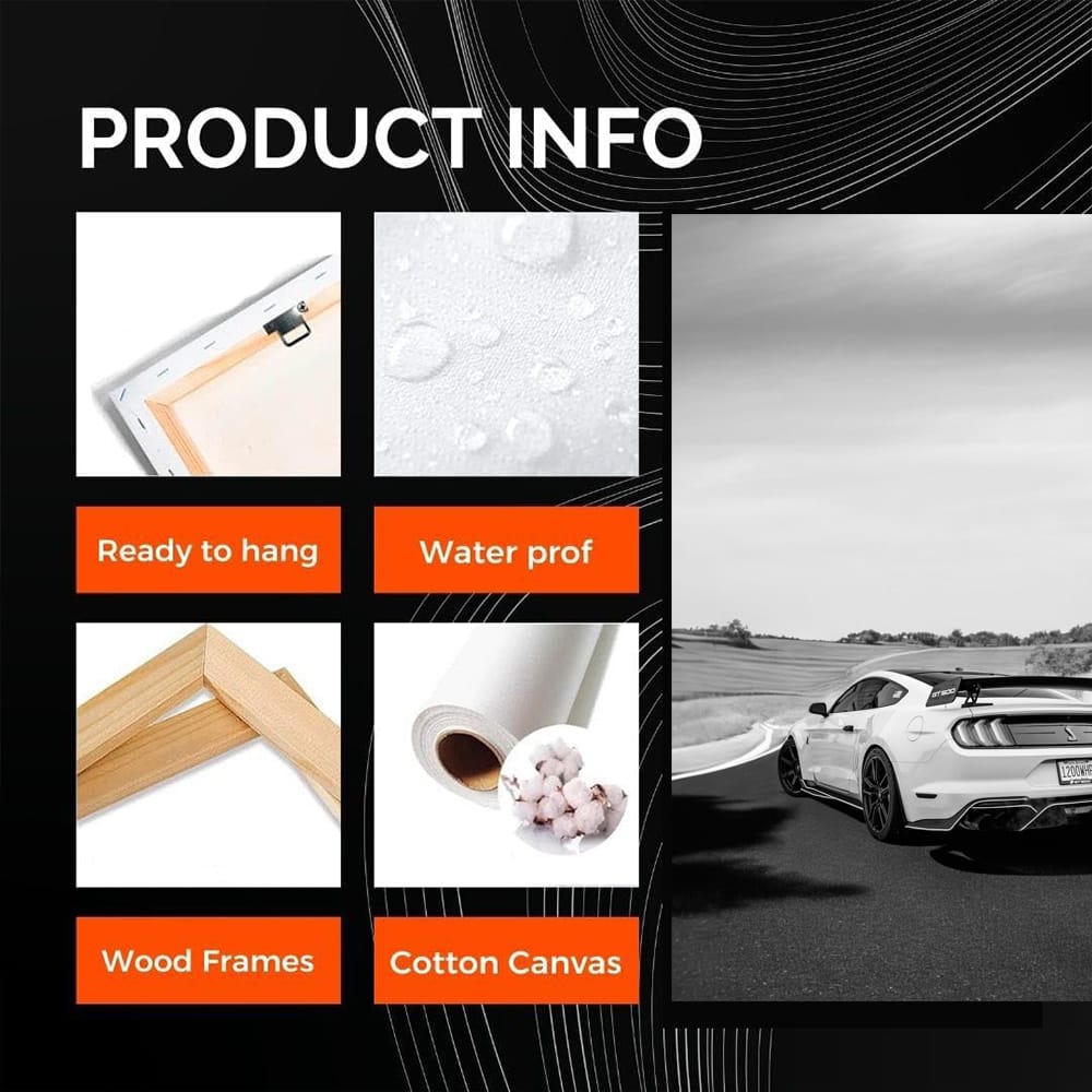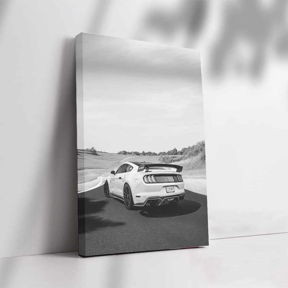 This Mustang painting is a blast! The black and white poster blows your mind like a turbo on full blast. Wall art for true car lovers. Hang this in your garage and feel your adrenaline go through the roof. The perfect way to show who's boss. See more from the collection: Ford Art