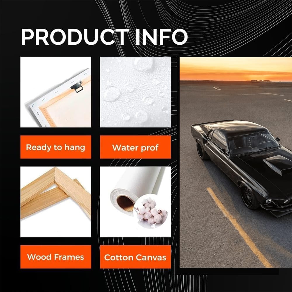 This painting is pure magic for car lovers. The poster features an old black Mustang standing proudly against the sunset. Wall art that will take your breath away. This is not just a painting, it is a symbol of courage and speed. Hang it on your wall and feel the roar of the engine! See more from the collection: Ford Art