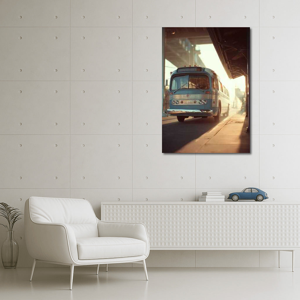 Vintage Bus in Sunset Lights: Retro Transport Wall Art