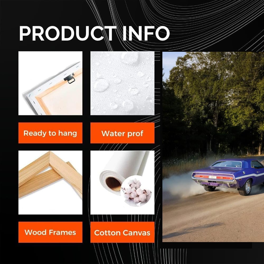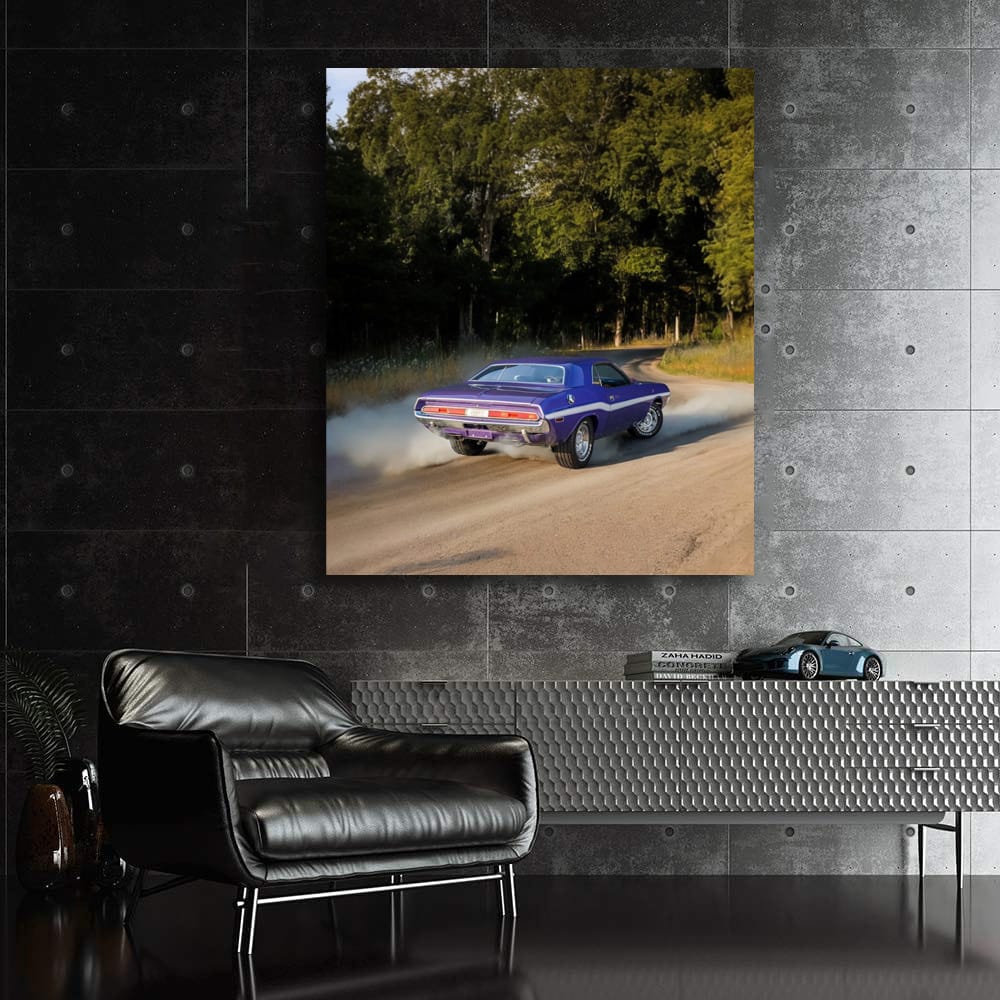 This poster of an old school Dodge Challenger is a blast to hang on your garage walls. Wall art that screams "speed" and "power". Ripped from the golden age of muscle cars, this painting will make your heart beat faster. The perfect gift for a true car fan! See more from the collection: Dodge Art