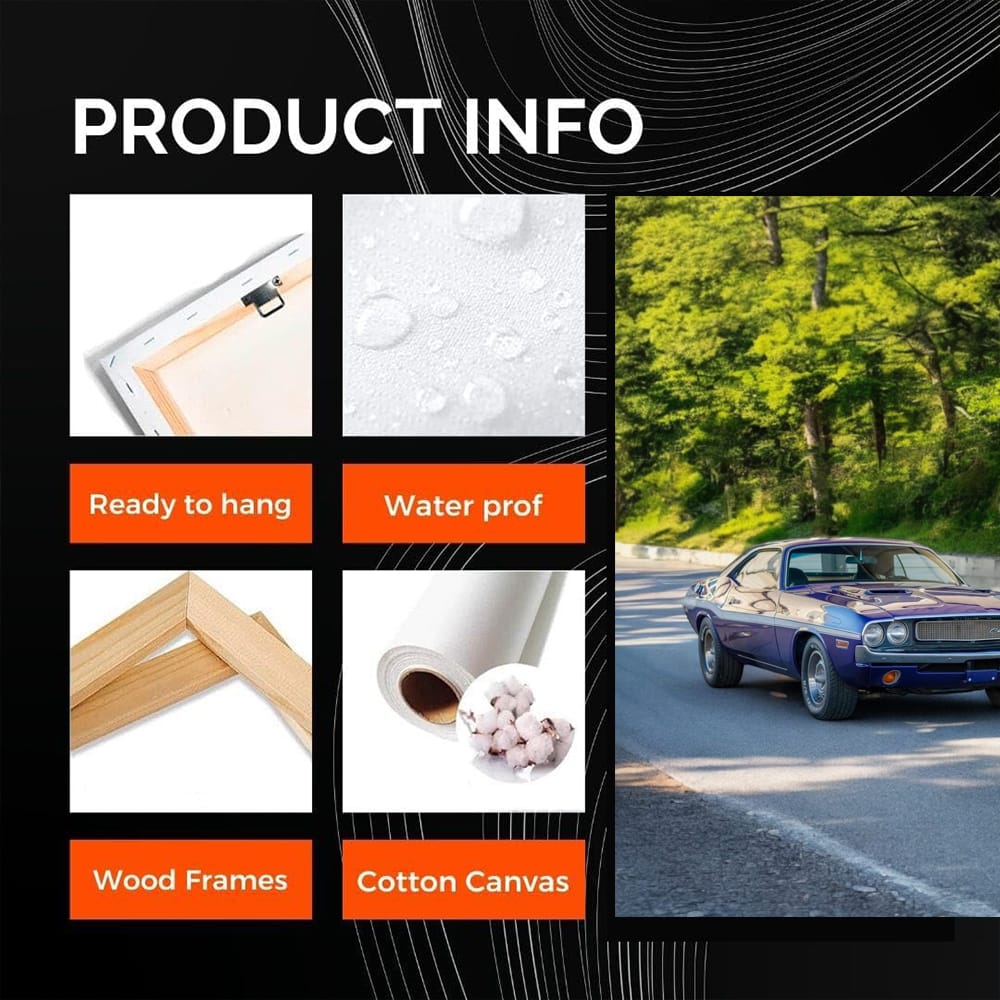 Oh man, look at this poster! This is not just a painting, this is a true masterpiece of wall art. The old Dodge Challenger is a symbol of power and daring. Every line screams: "I'm here to win!" This poster inspires you to roar your engine and tear down the track. See more from the collection: Dodge Art