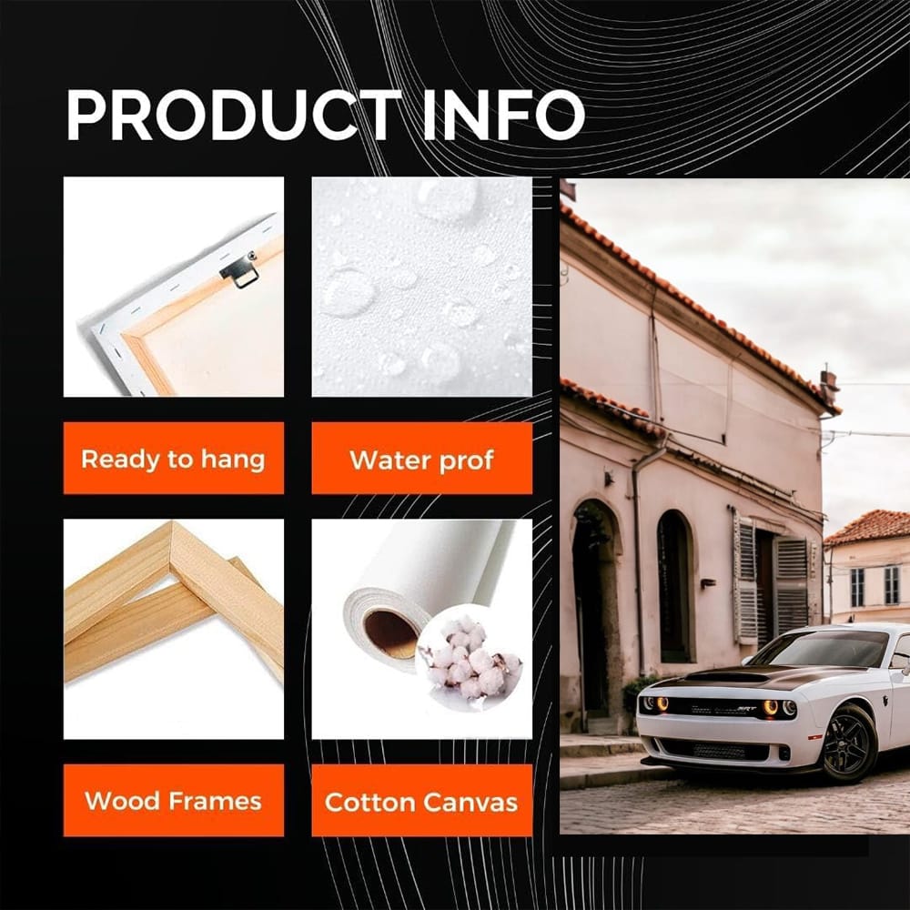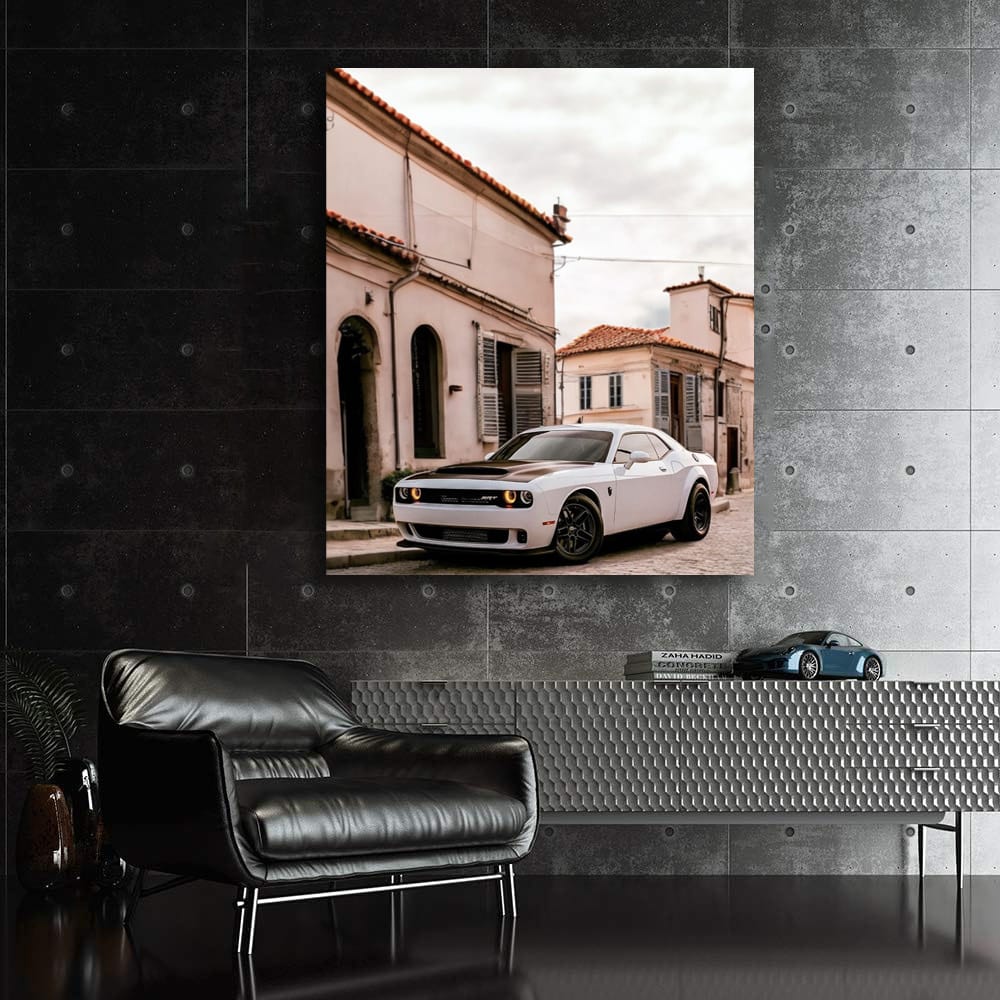 Hey bro, look at this poster - pure madness! Snow-white, old Dodge, like from legends, against the background of the old city. This wall art is for true car lovers. The painting screams adrenaline, speed and rebellion. The style is bold, as it should be. See more from the collection: Dodge Art
