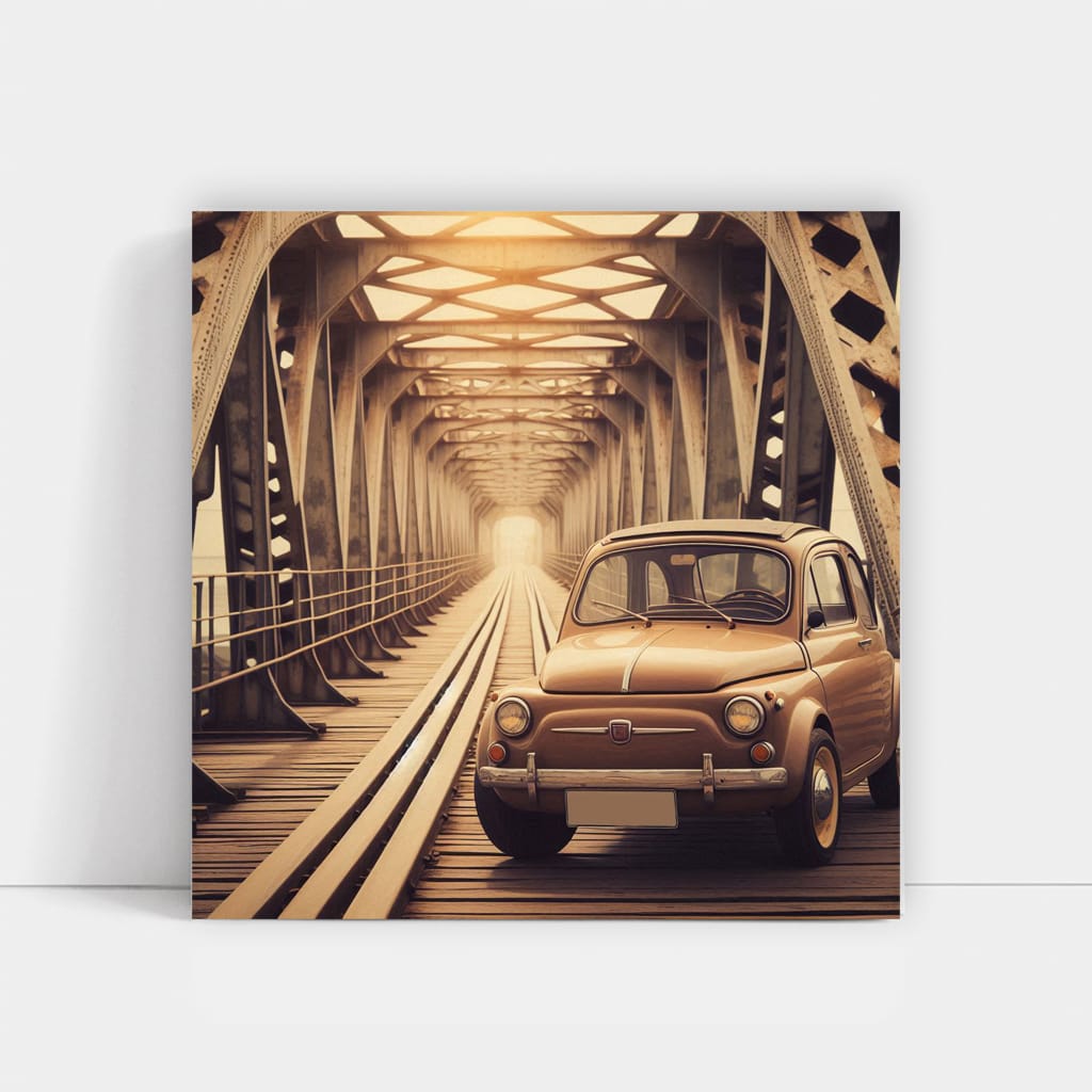 Vintage Fiat on Old Bridge - Classic Retro Charm Wall Art