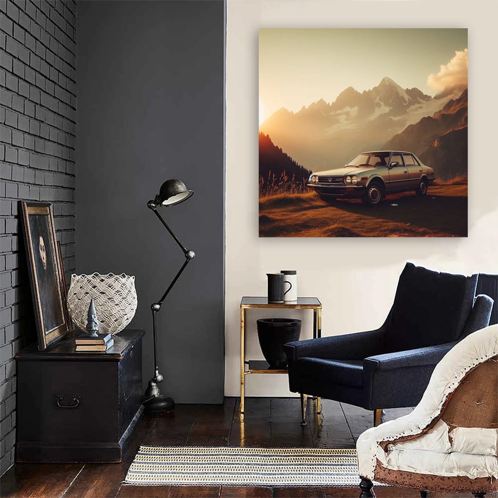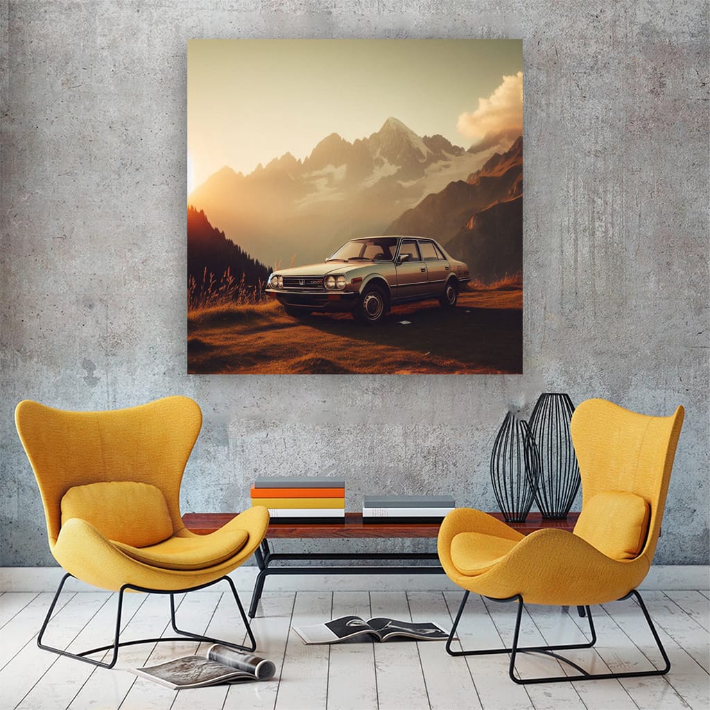 Bro, this Honda poster is the bomb! It shows an old school car racing along mountain serpentines, and you immediately feel the drive. Wall art that will take your breath away. For true connoisseurs of retro and speed! See more from the collection: Honda Art