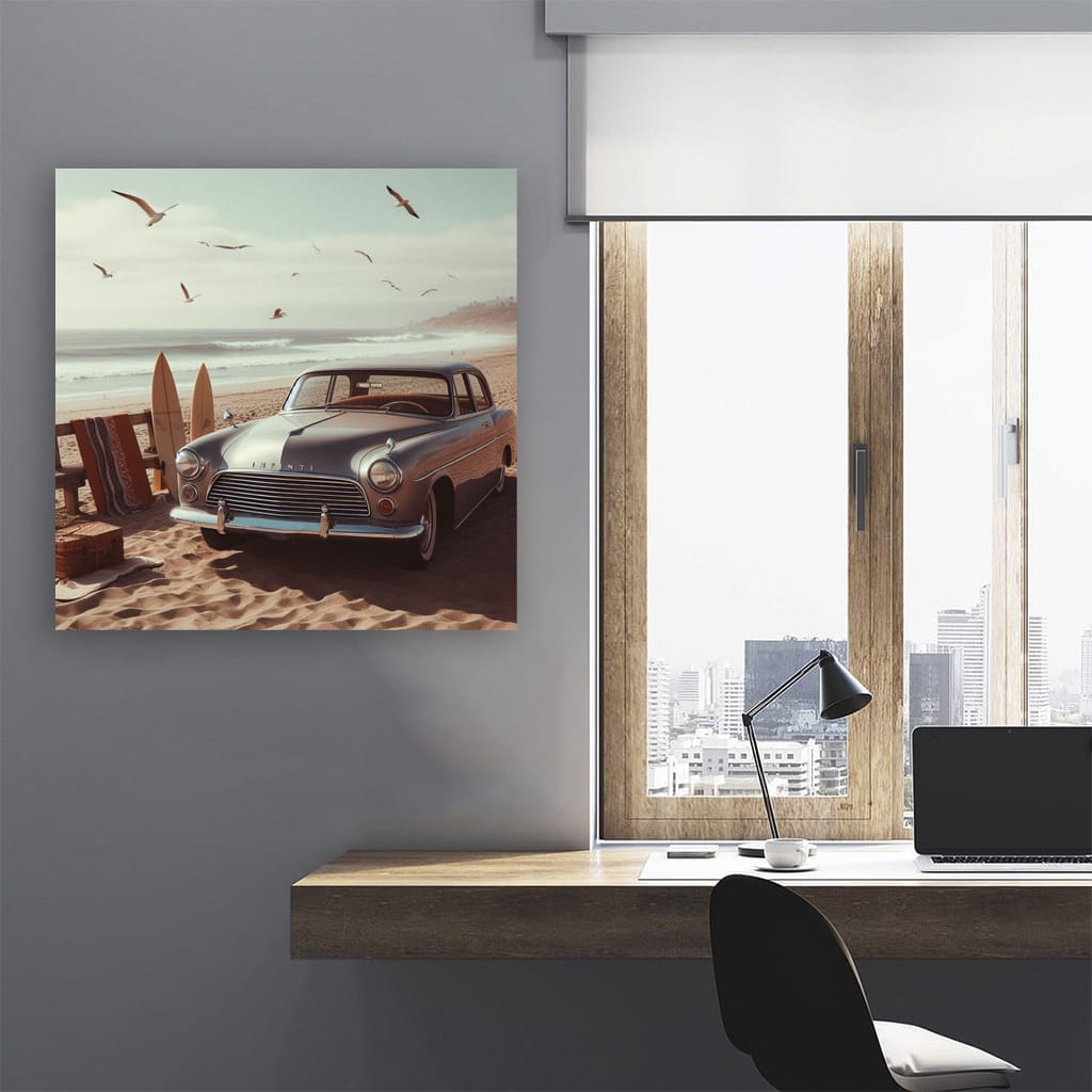 Vintage Infiniti on Beach - Classic Style & Nostalgia Wall Art