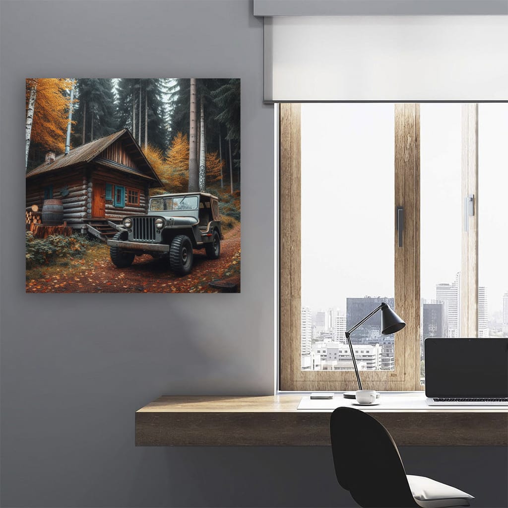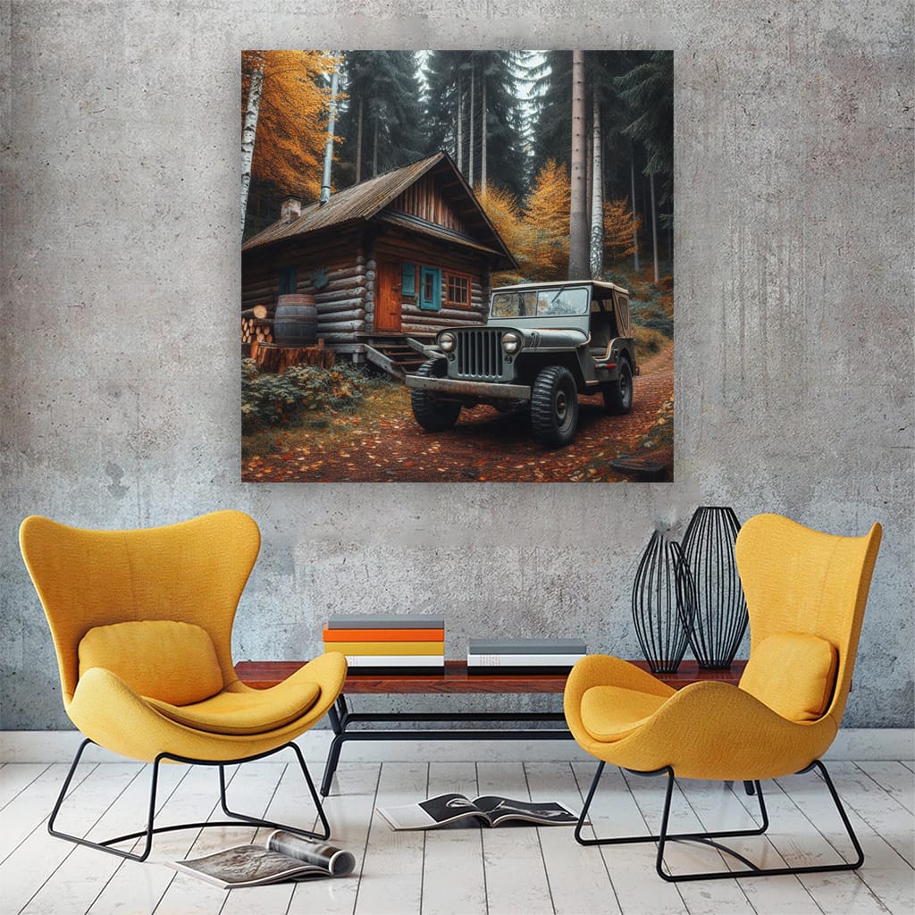 Bro, just look at this painting! The old retro jeep on the poster is not just wall art, it's pure classic on wheels. This art will pump up any wall, like nitro in your engine. It's a dream of any old school lover! See more from the collection: Jeep Art
