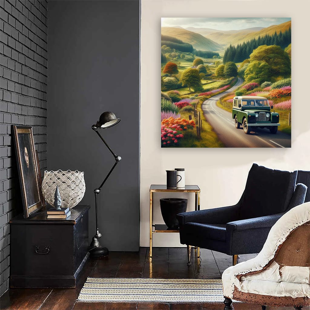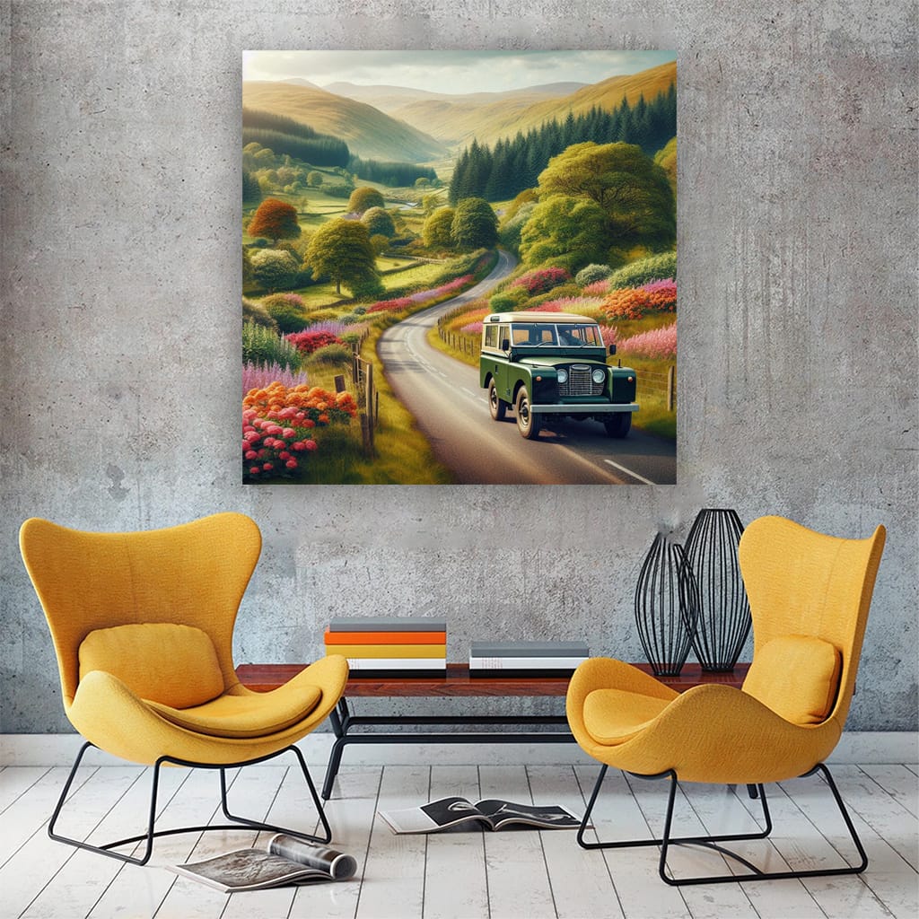 Vintage Land Rover on Classic Road - Timeless Adventure Wall Art