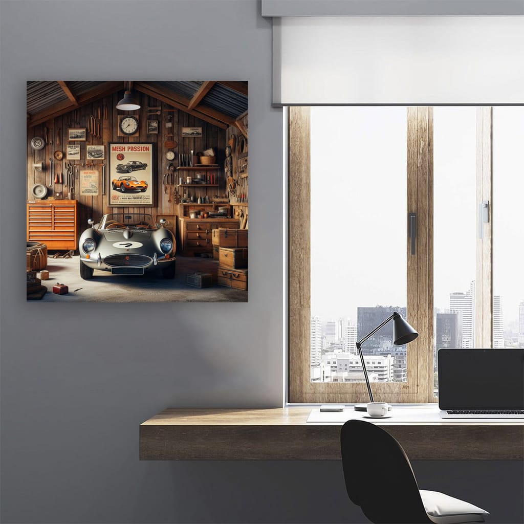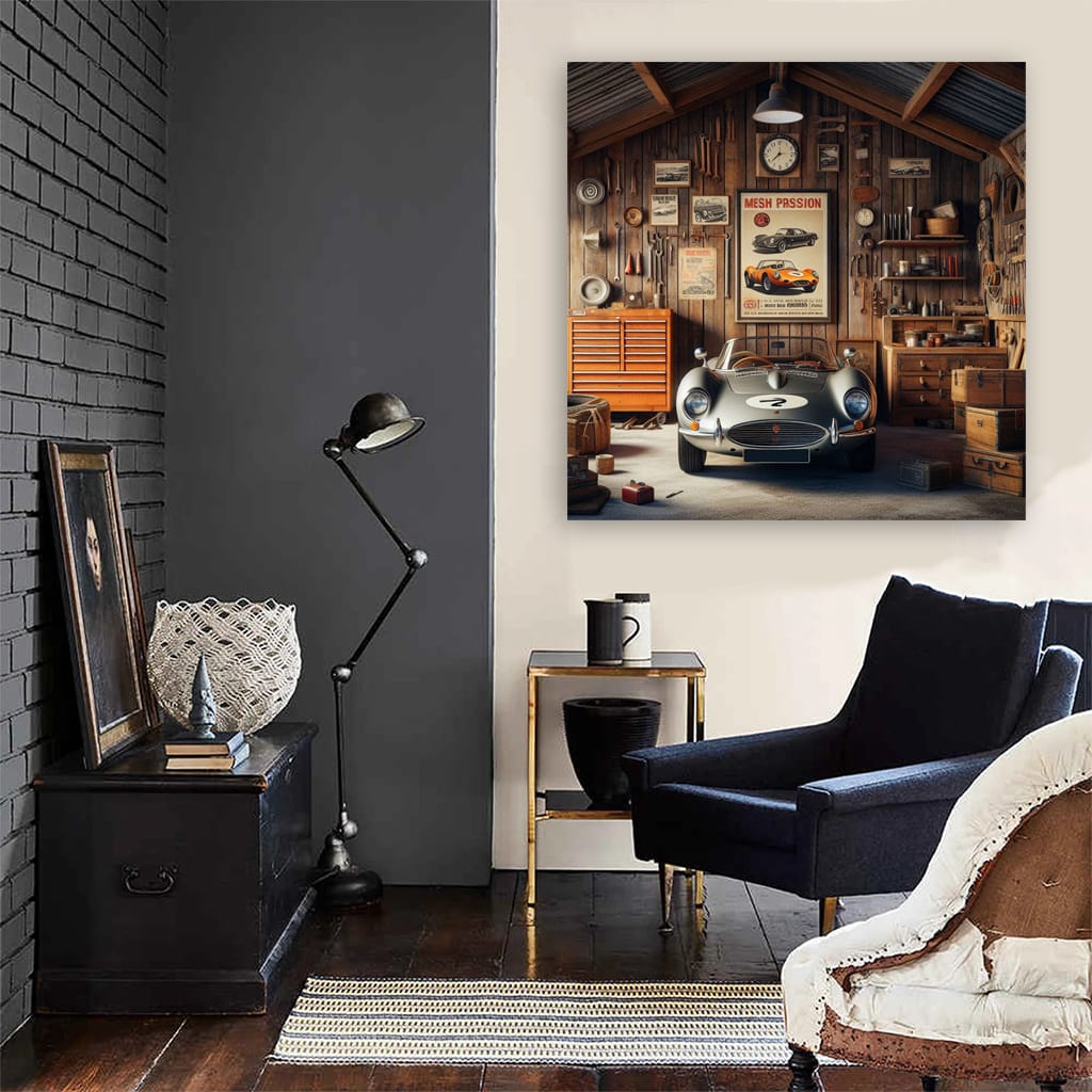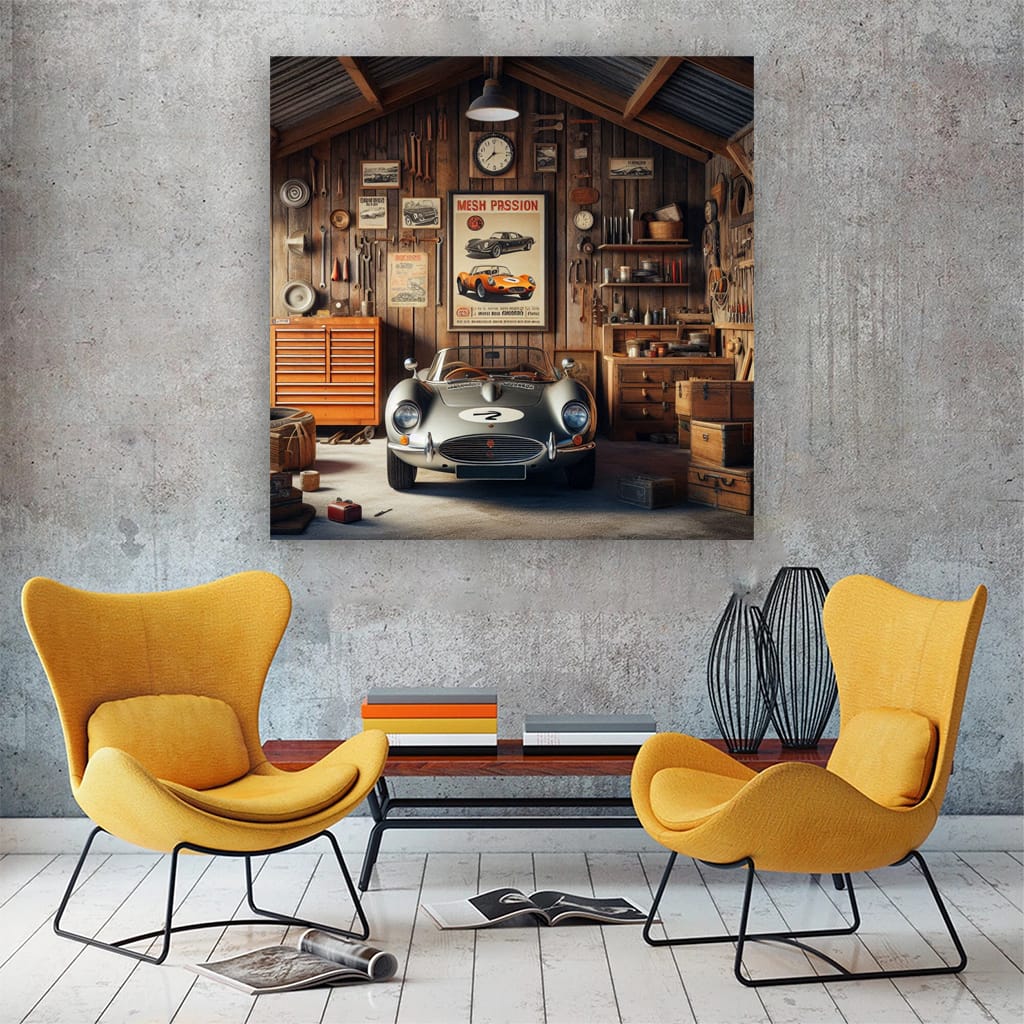 Vintage McLaren in Classic Retro Garage - Timeless Elegance Wall Art