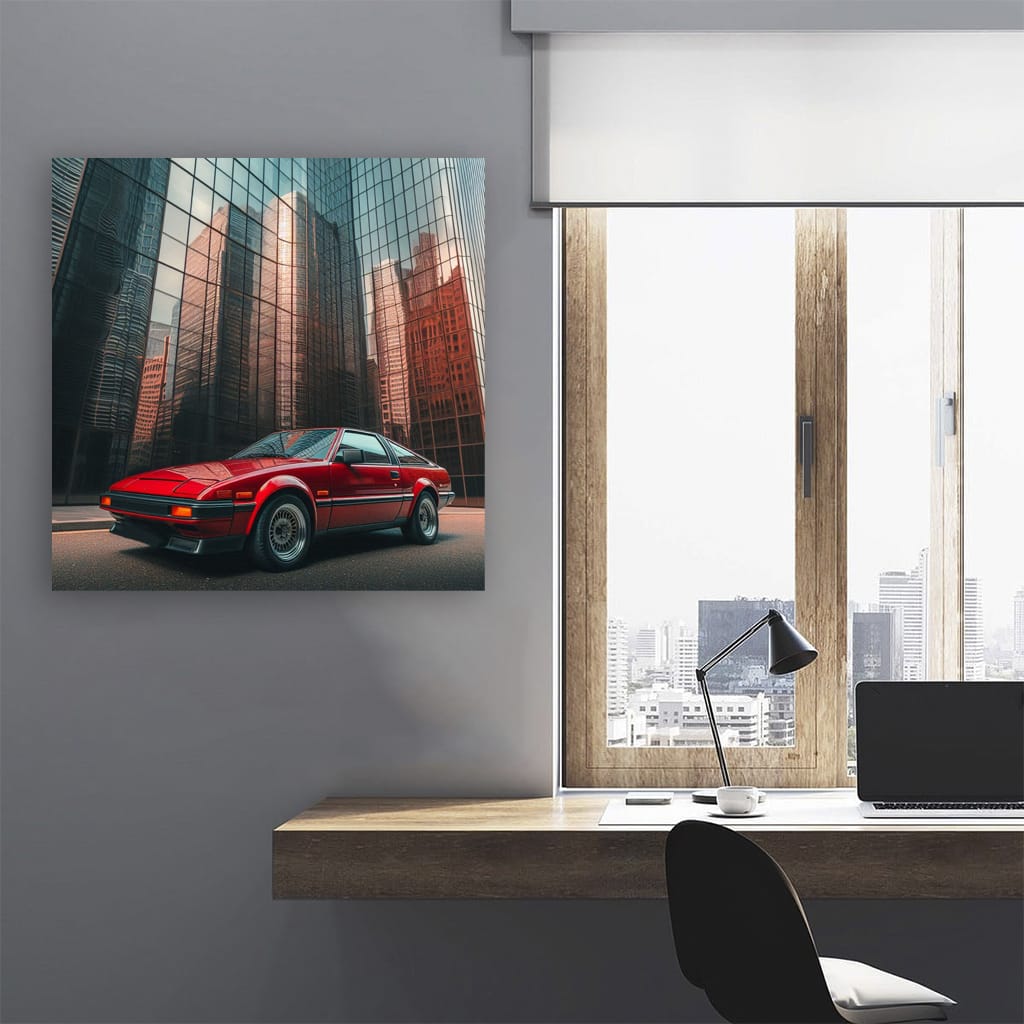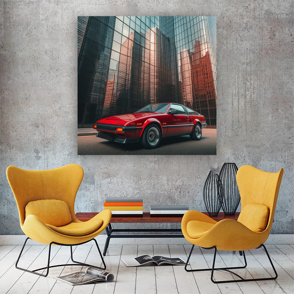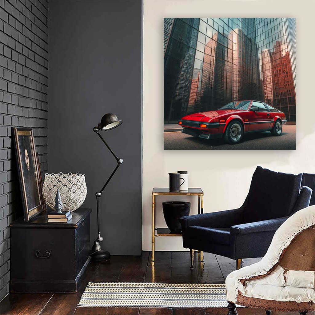 This poster is a bomb! The old Mitsubishi, squeezed into the urban landscape, looks like a real king of the streets. Wall art for those who understand that a car is not just a means of transportation, but a lifestyle and a real legend. See more from the collection: Mitsubishi Art