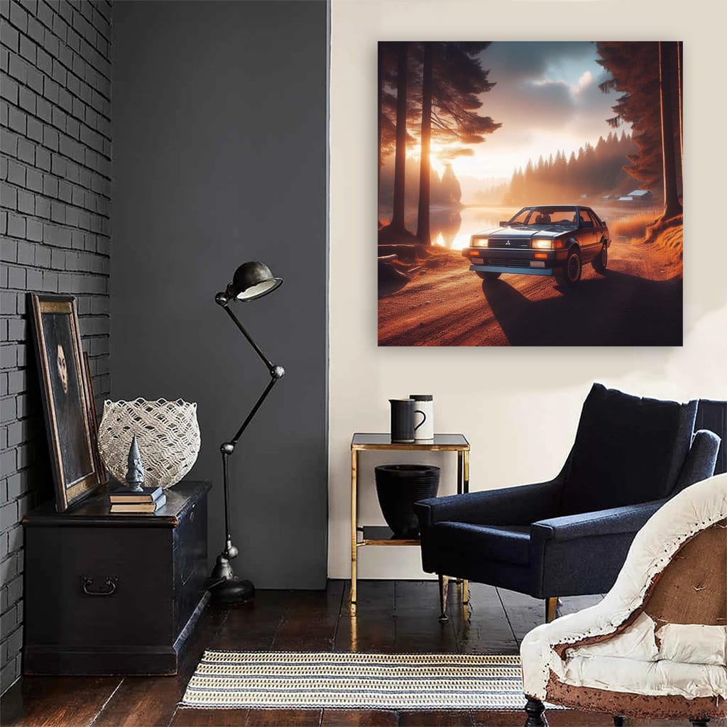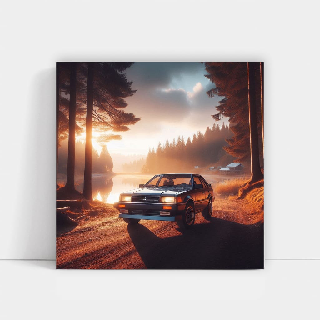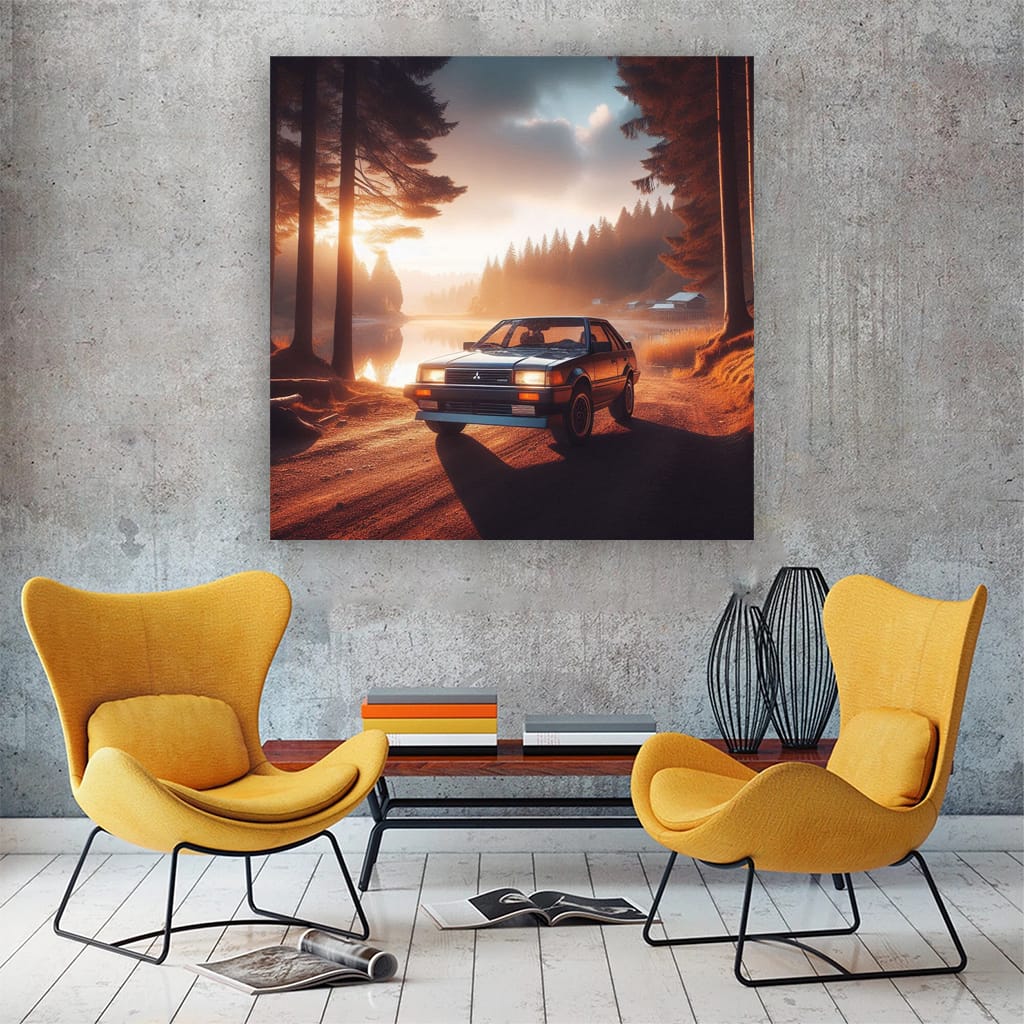 Dude, have you seen this poster of a Mitsubishi in a natural setting? It's a living legend! Wall art that makes the car seem to burst out of the past and into your room. A painting that will make any car fan's heart beat faster. See more from the collection: Mitsubishi Art