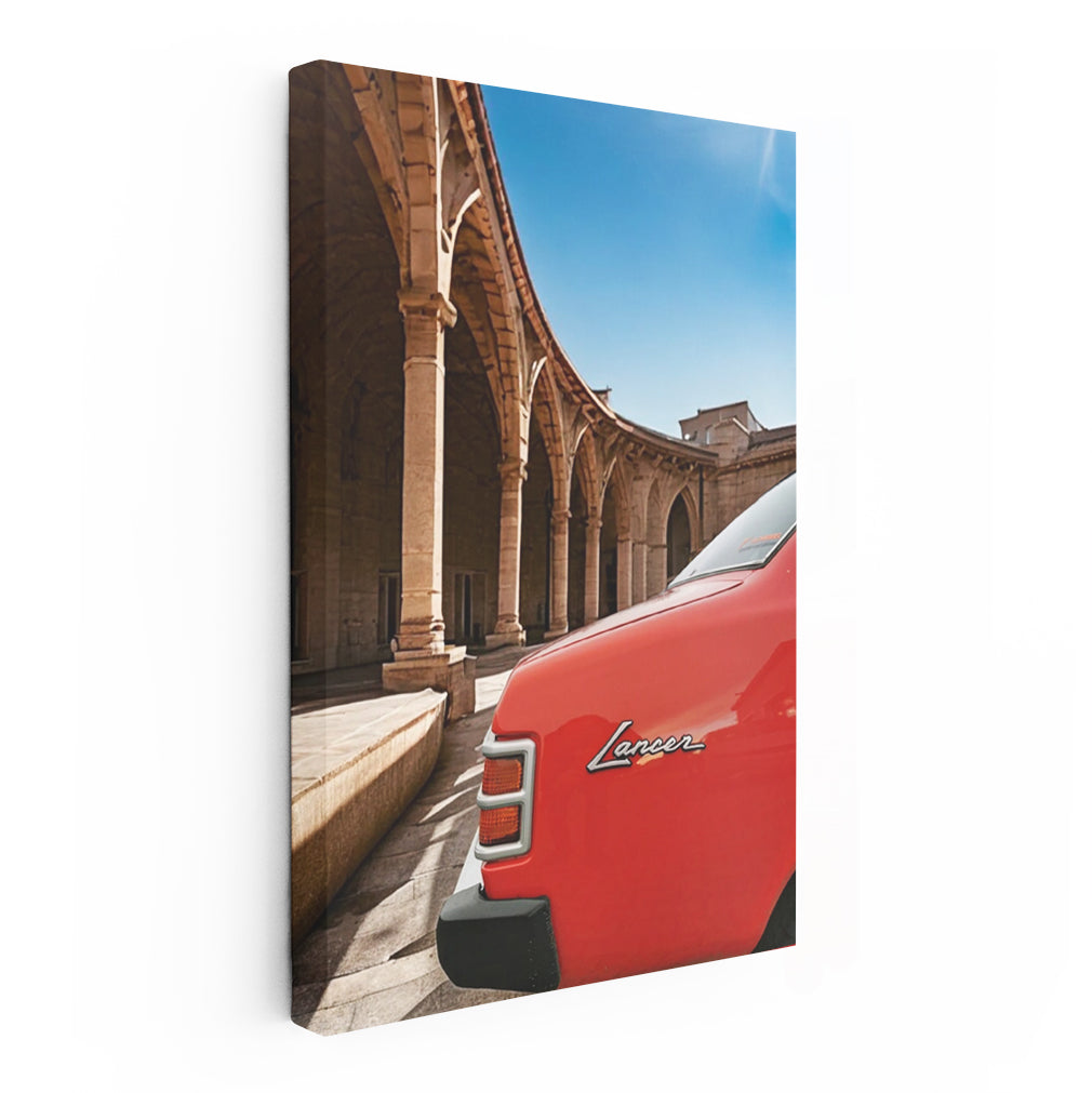 Vintage Mitsubishi Lancer in Historic Town - Timeless Elegance Wall Art